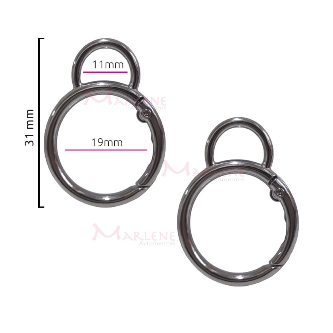 Detalhes: Argola articulada com alça 19mm níquel (Mosquetão) com 2 unidades DVP-30-9400