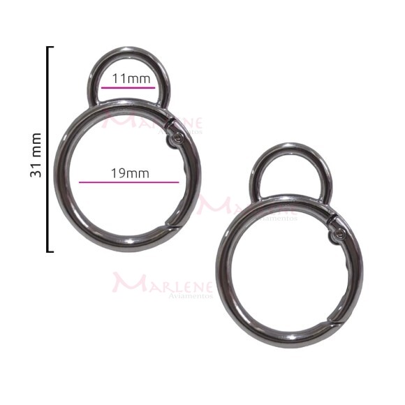 Uso: Argola articulada com alça, usado em bolsas, mochilas, acessórios decorativos, chaveiros, acessórios com correntes (pulseiras e colares). Fica perfeita principalmente em alças com corrente de metal.
