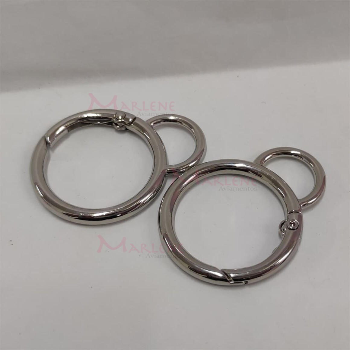 Detalhes: Argola articulada com alça 25mm níquel (Mosquetão) com 2 unidades THK-2-2.5