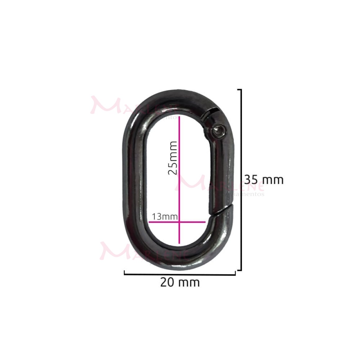 Detalhes: Argola articulada oval 25mm grafite (Mosquetão) com 10 unidades