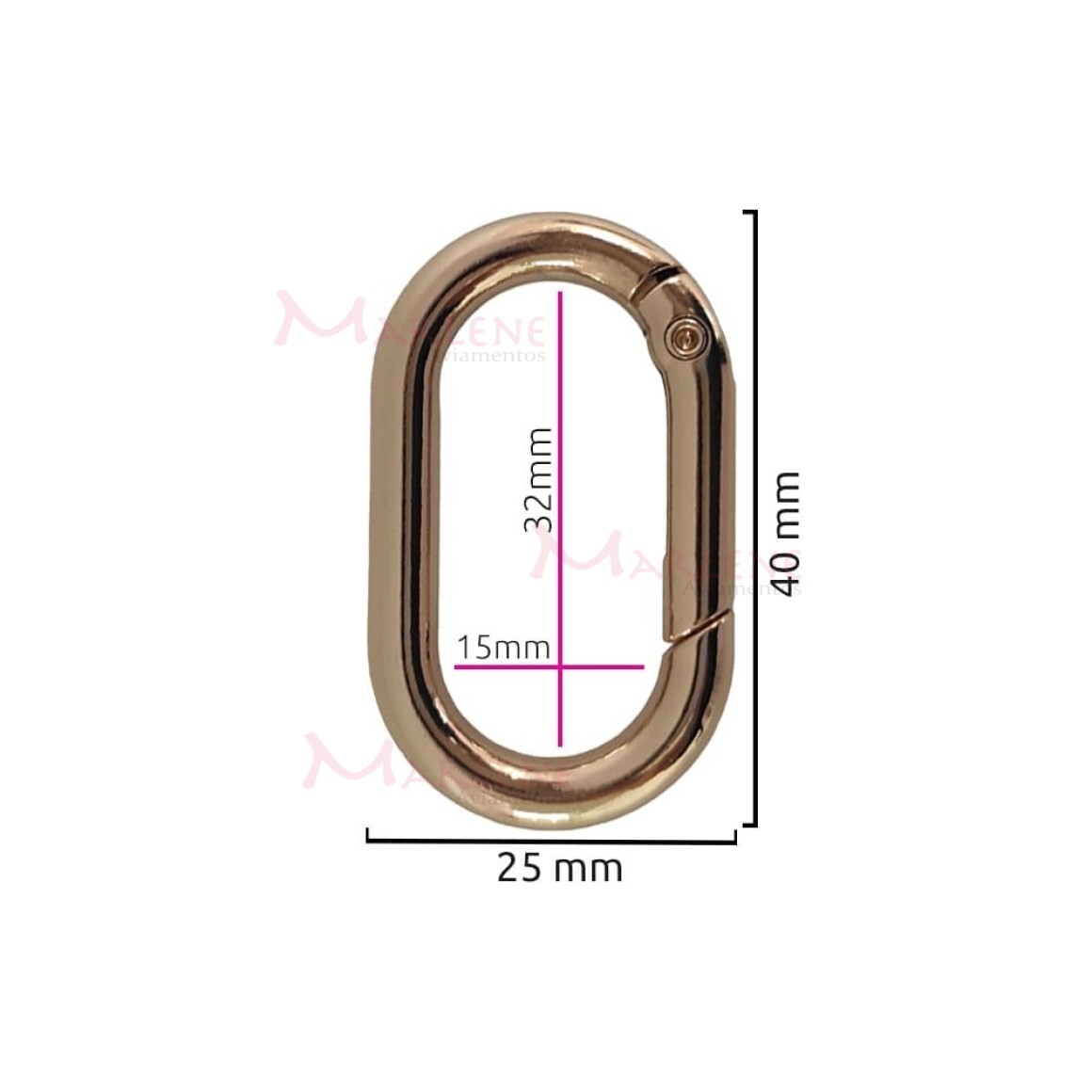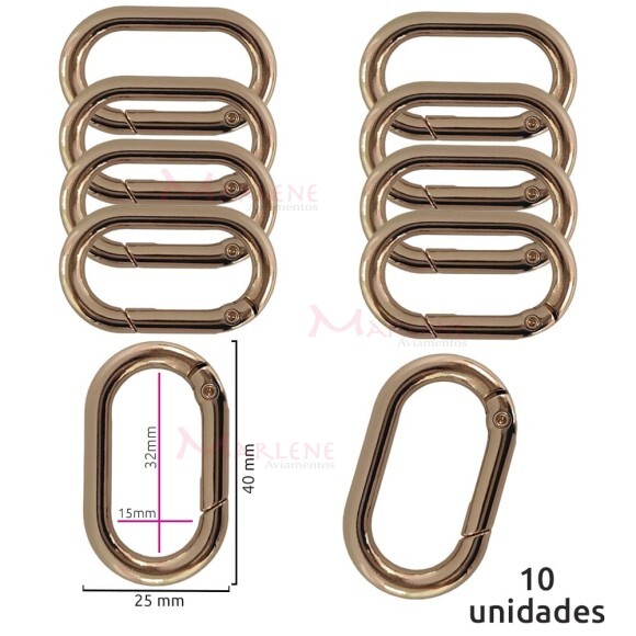 Detalhes: Argola articulada oval 32mm ouro (Mosquetão) com 10 unidades