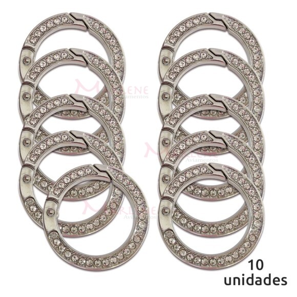 Detalhes: Argola articulada com strass 25mm níquel (Mosquetão) 10 unidades