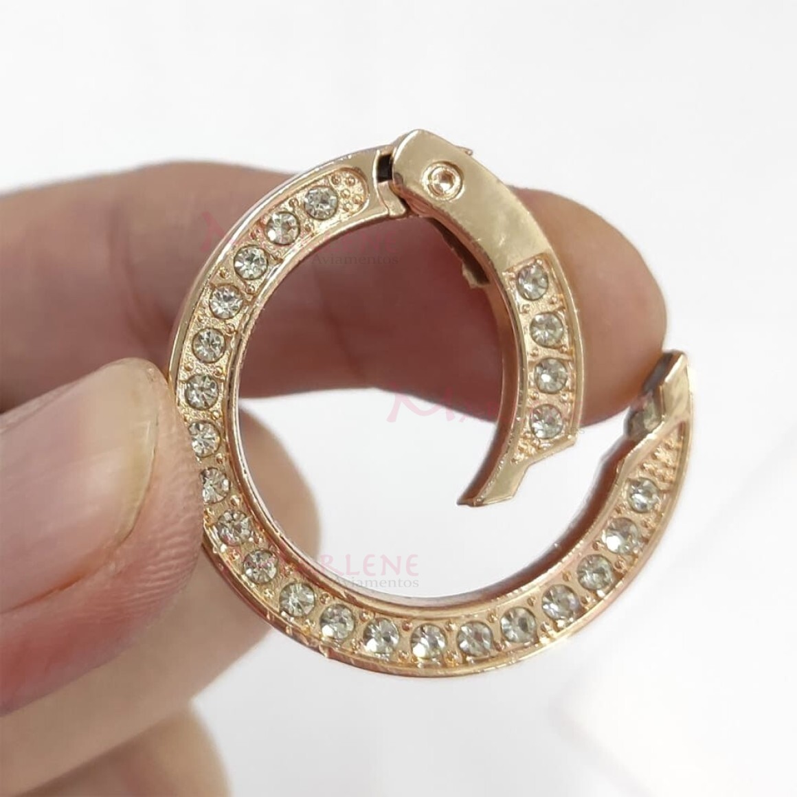 Detalhes: Argola articulada com strass 25mm ouro (Mosquetão) 2 unidades