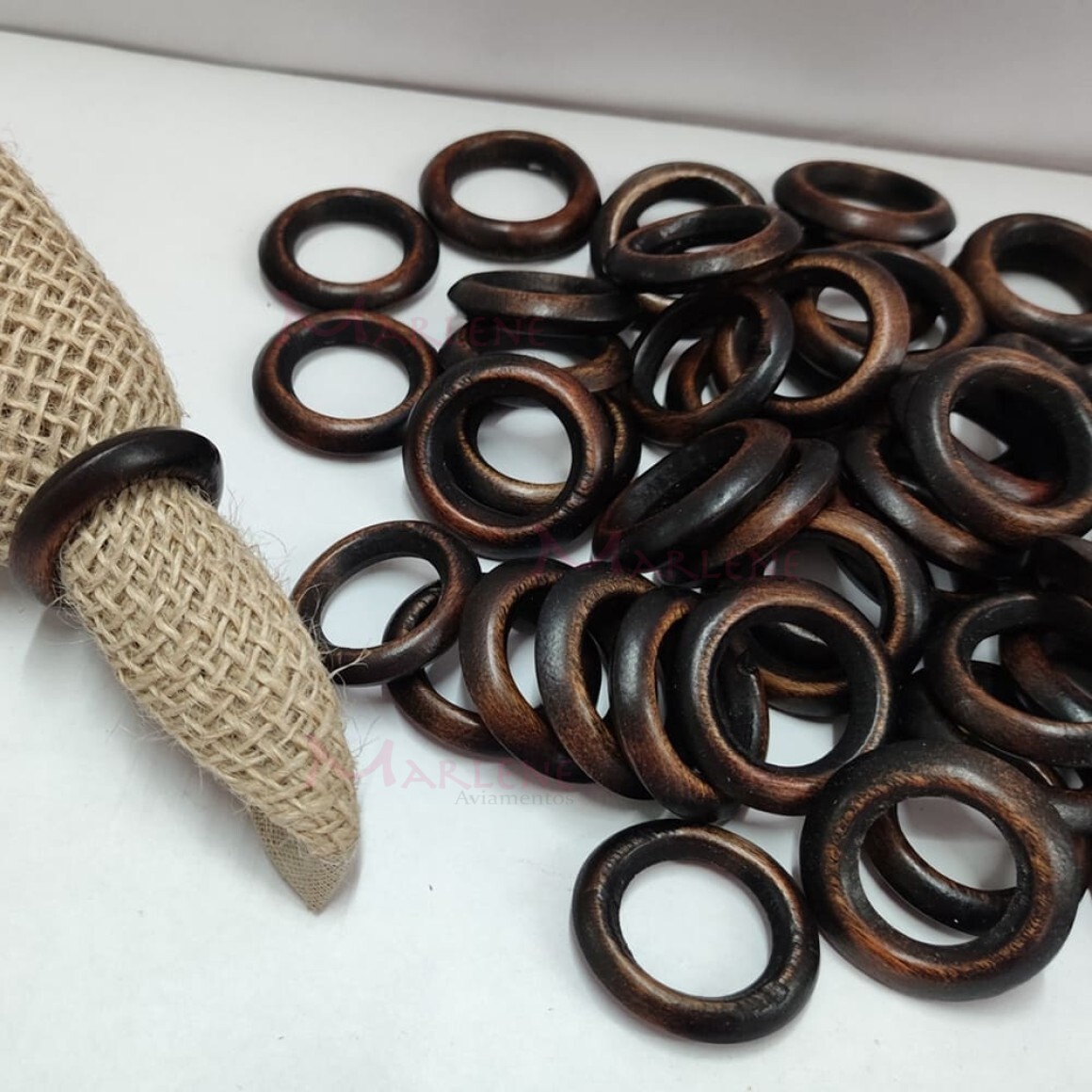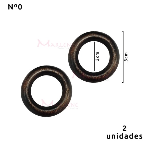 Detalhes: Argola de madeira 20 mm (Tam.0) imbuia com 2 unidades