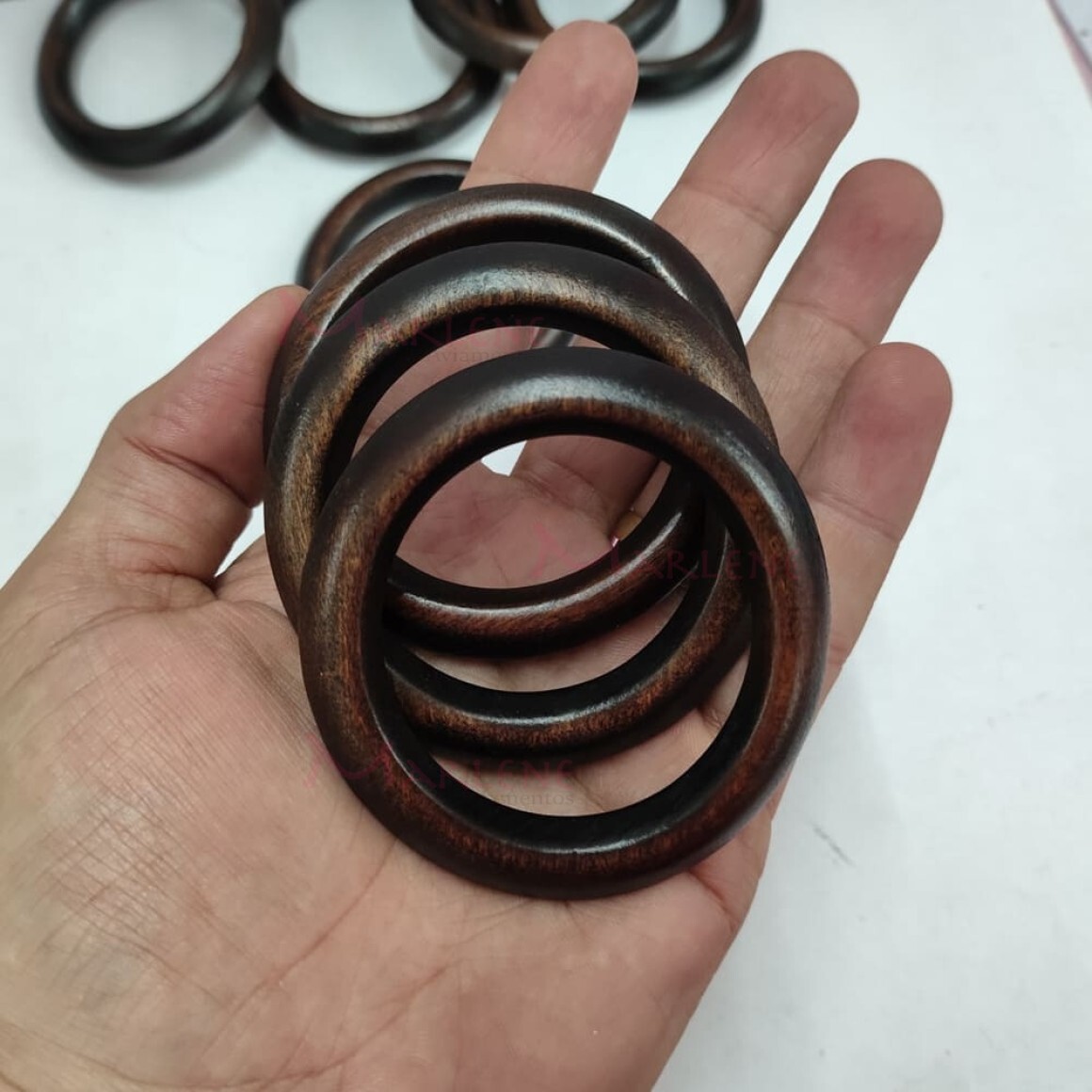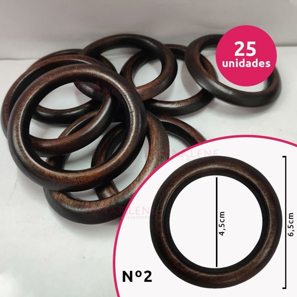 Detalhes: Argola de madeira 45 mm (Tam.2) imbuia com 25 unidades