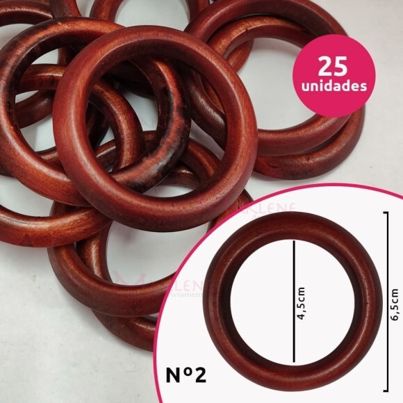 Uso: A argola de madeira pode ser usada em trabalhos de artesanato, chaveiros, em porta guardanapos, detalhes de alças de bolsa, chocalhos, trabalhos de macramê, decoração de cortinas, entre outros.