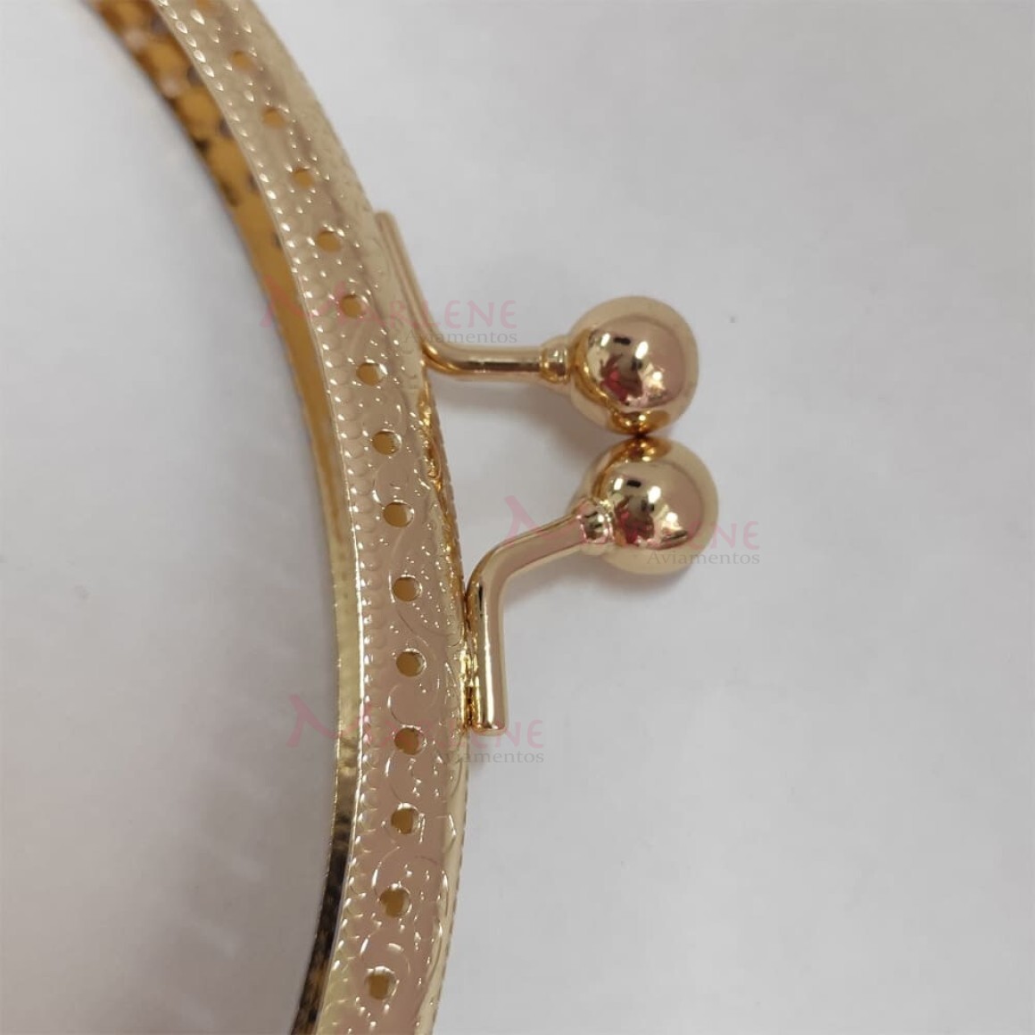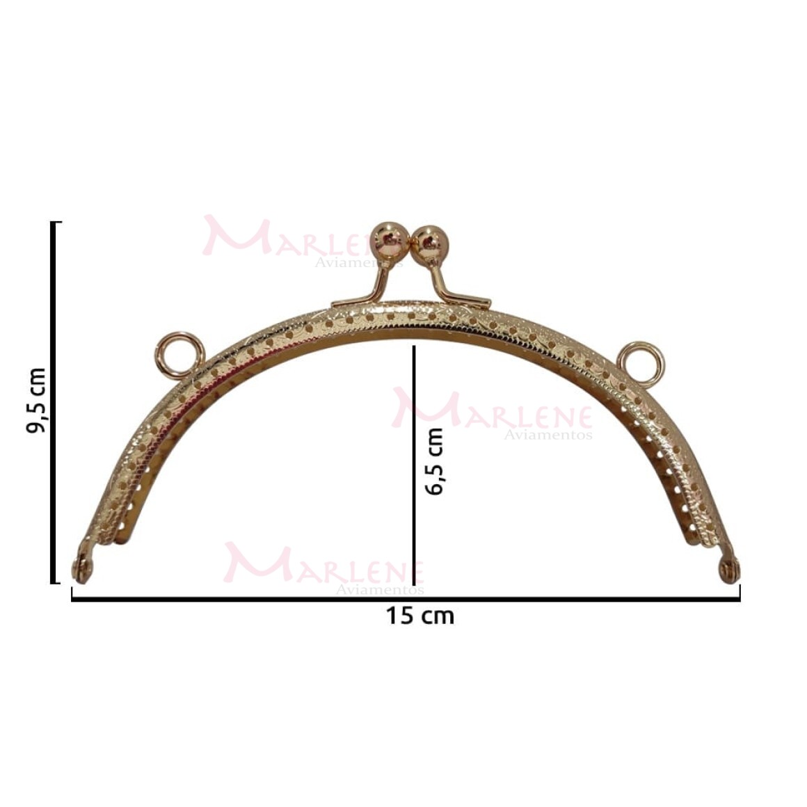 Detalhes: Armação fecho da vovó oval 15cm dourado c/furo e argola RO.151256