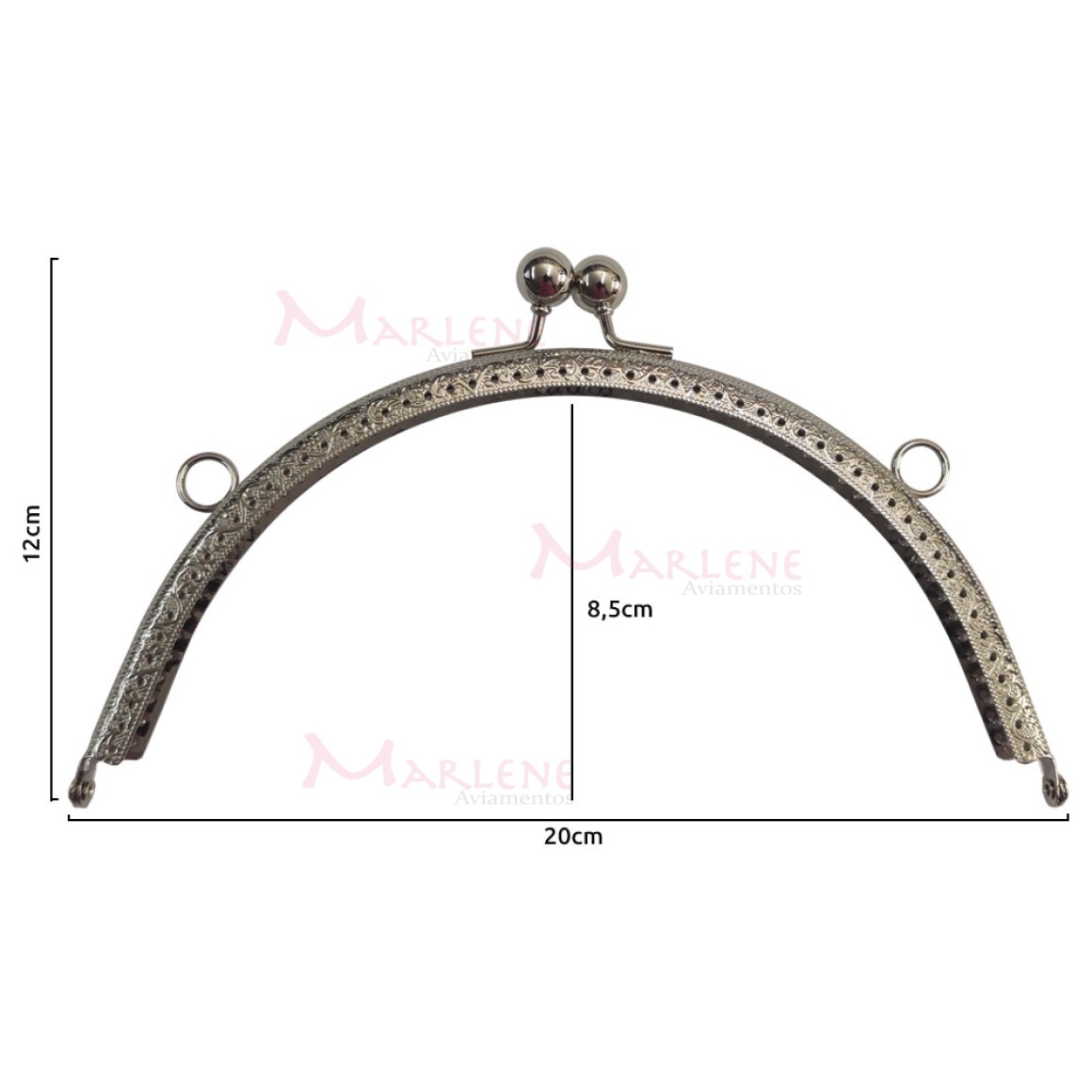 Detalhes: Armação fecho da vovó oval 20cm níquel c/furo e argola RO.151256