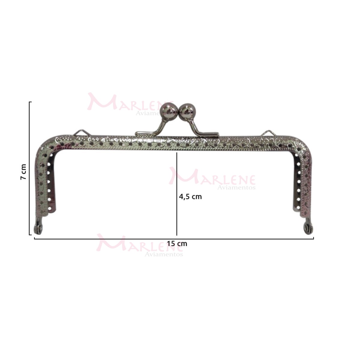Detalhes: Armação fecho da vovó retangular 15cm níquel c/furo e argola RO.151255
