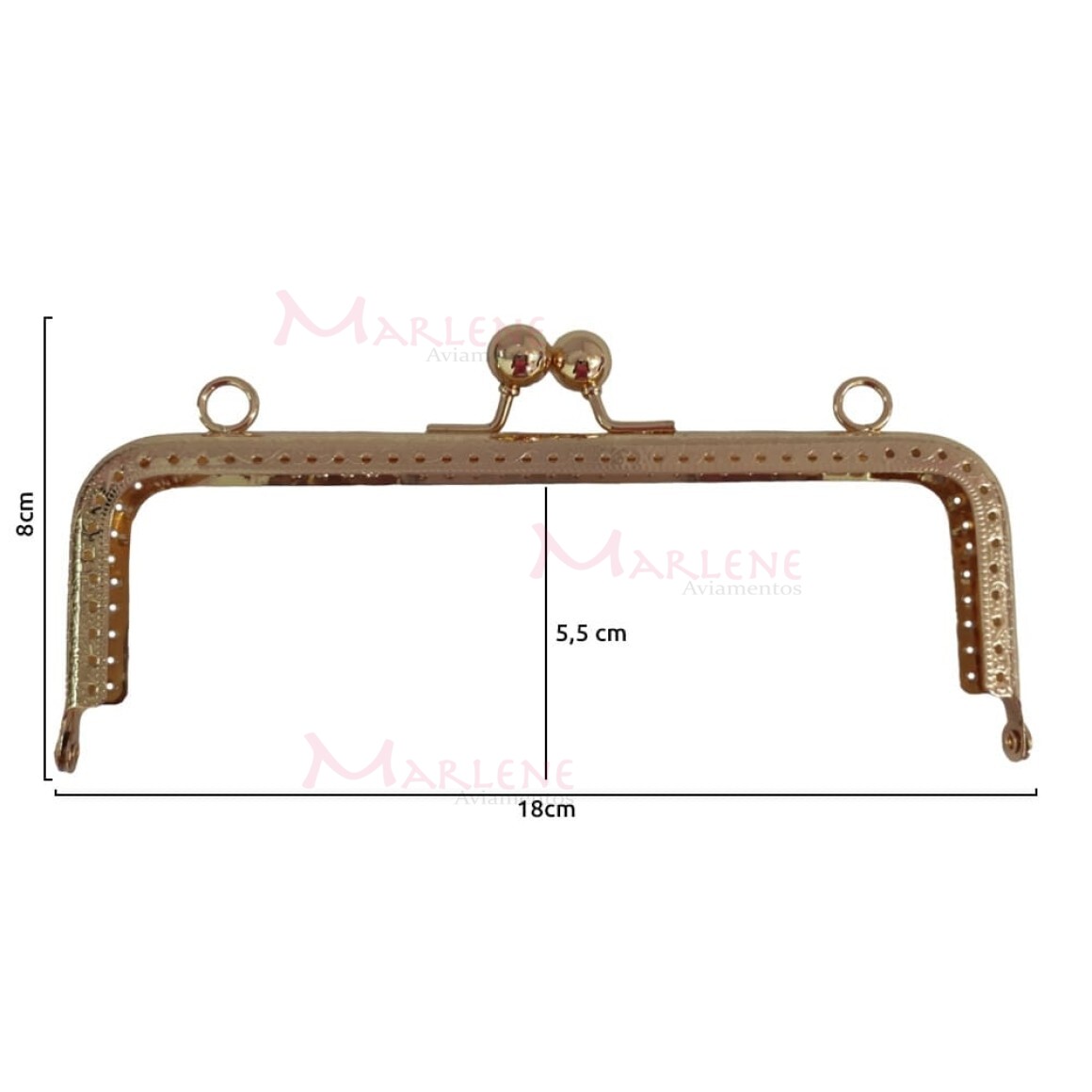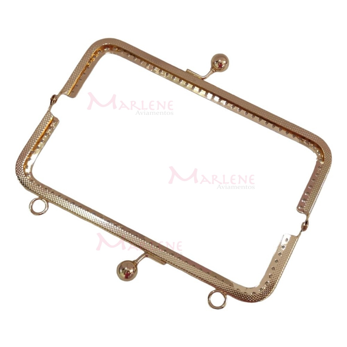 Detalhes: Armação fecho da vovó retangular 18cm dourado c/furo e argola RO.151255