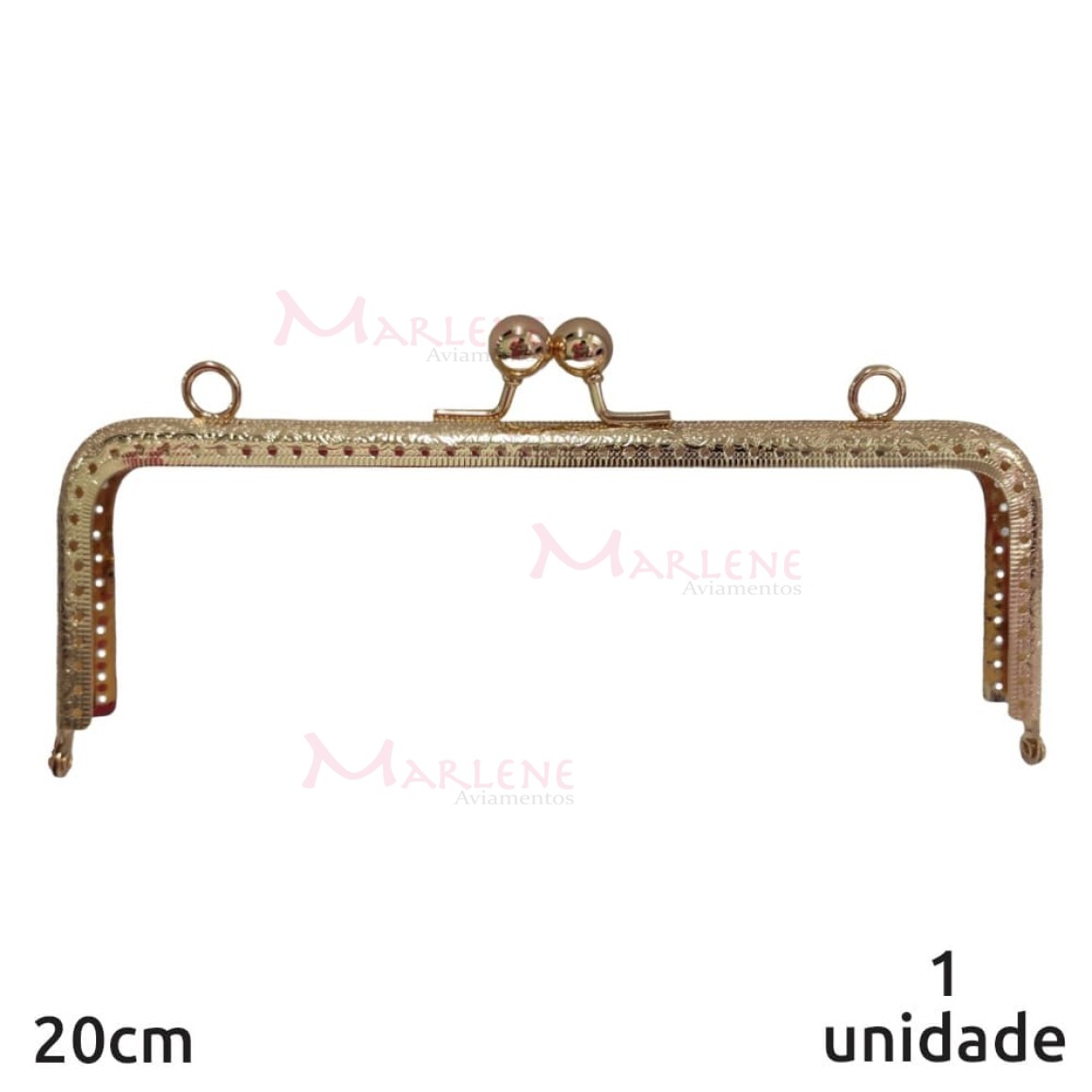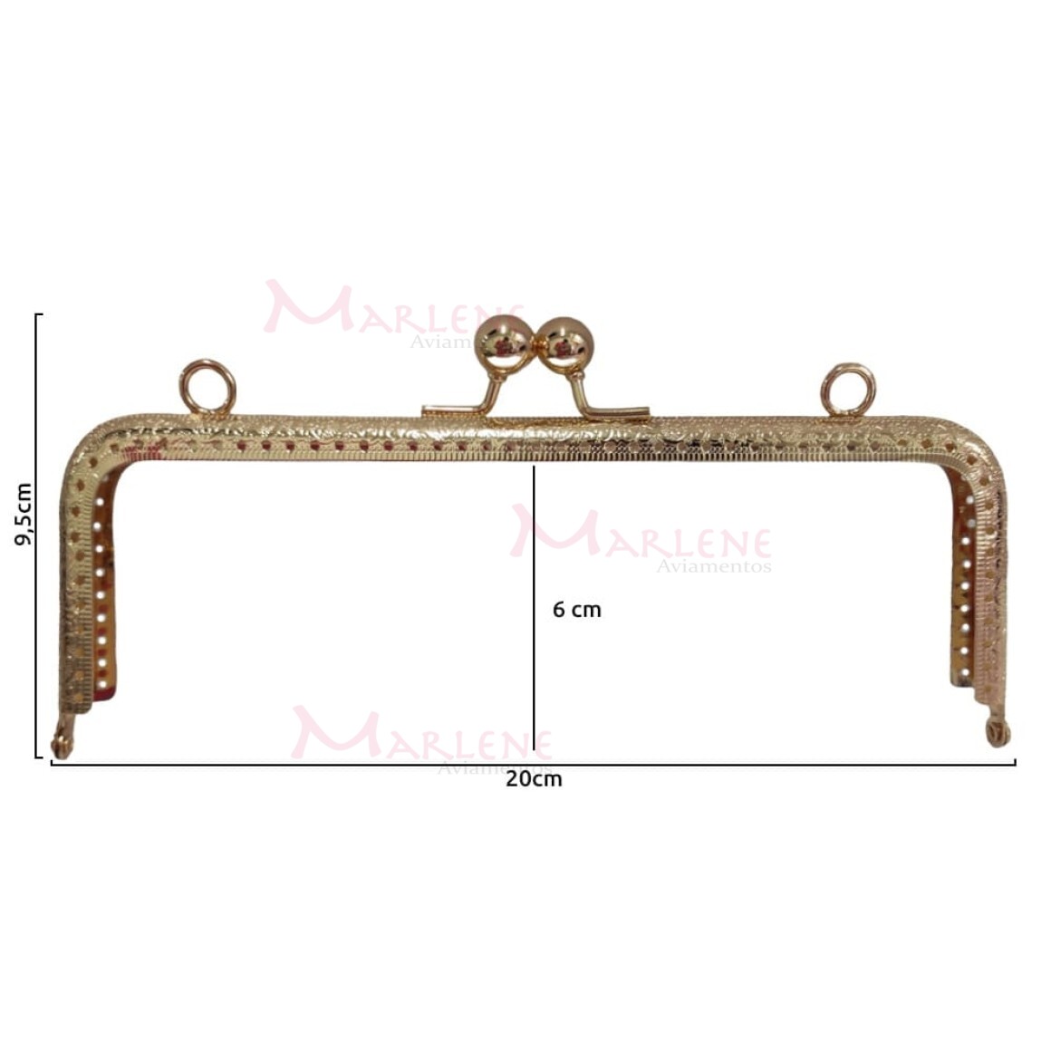 Detalhes: Armação fecho da vovó retangular 20cm dourado c/furo e argola RO.151255