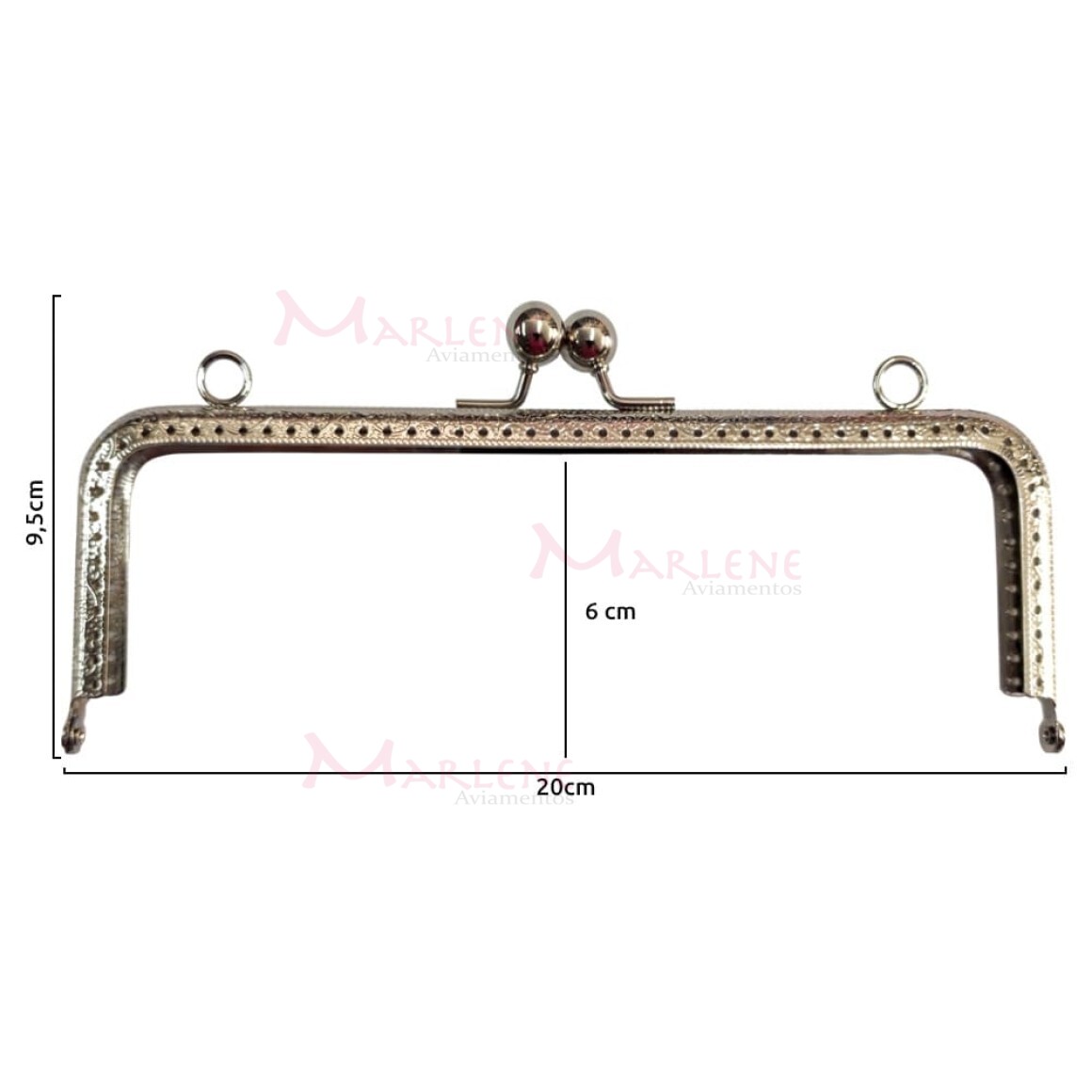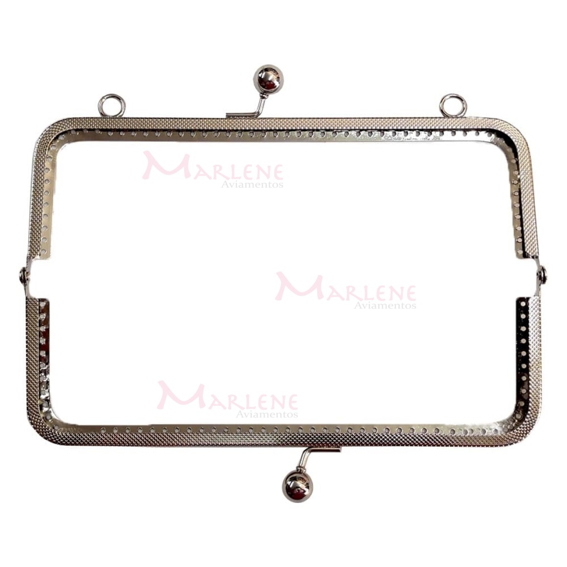 Detalhes: Armação fecho da vovó retangular 20cm níquel c/furo e argola RO.151255