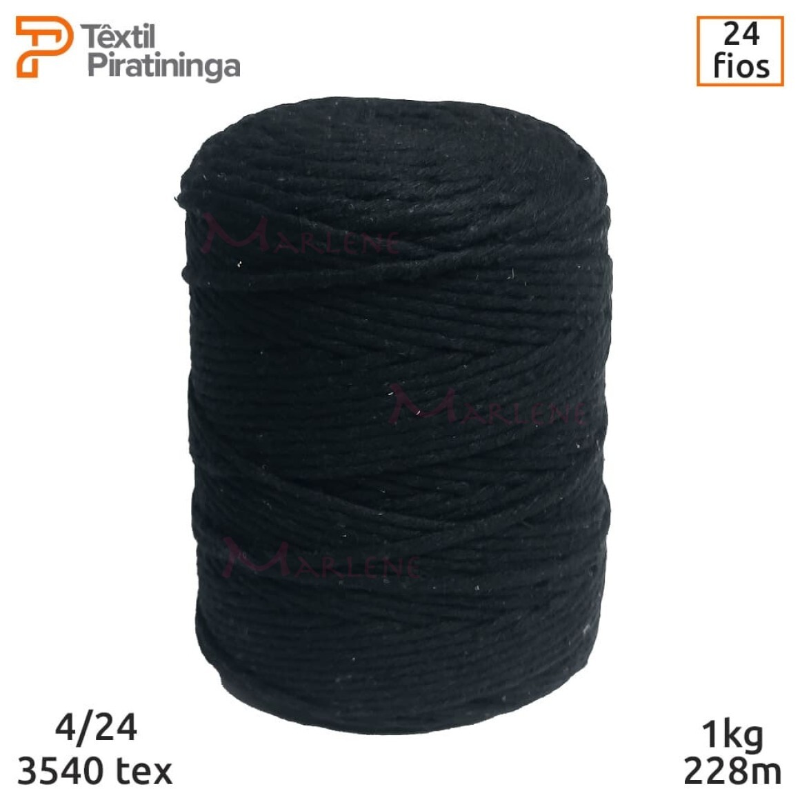 Detalhes: Barbante encorpado preto 4/24 fios 1kg com 228m Têxtil Piratininga