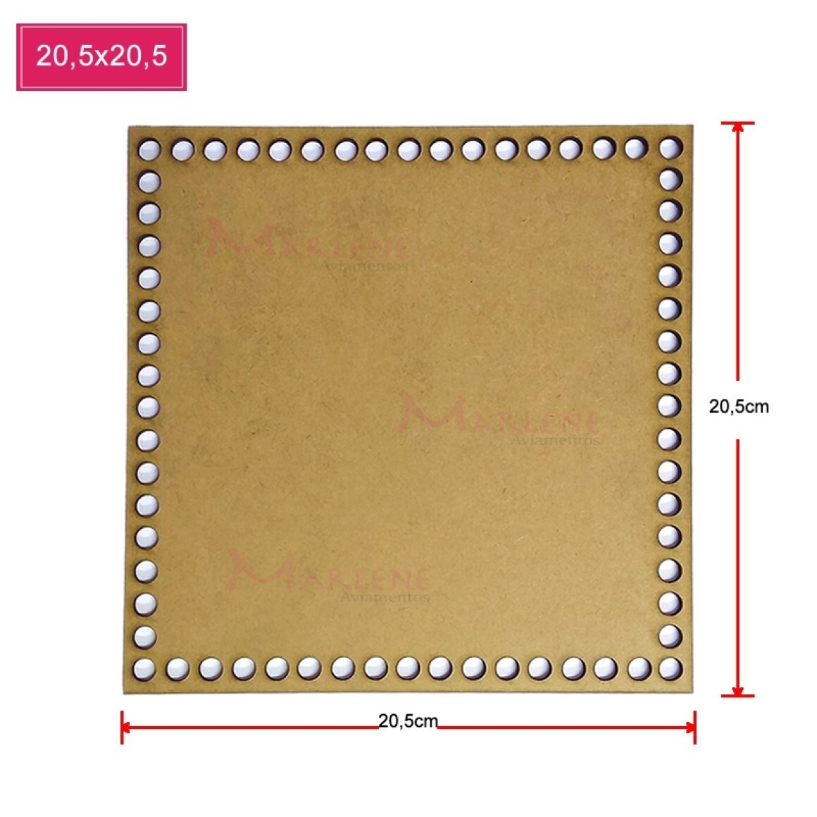 Detalhes: Base mdf quadrada 20,5x20,5cm para crochê