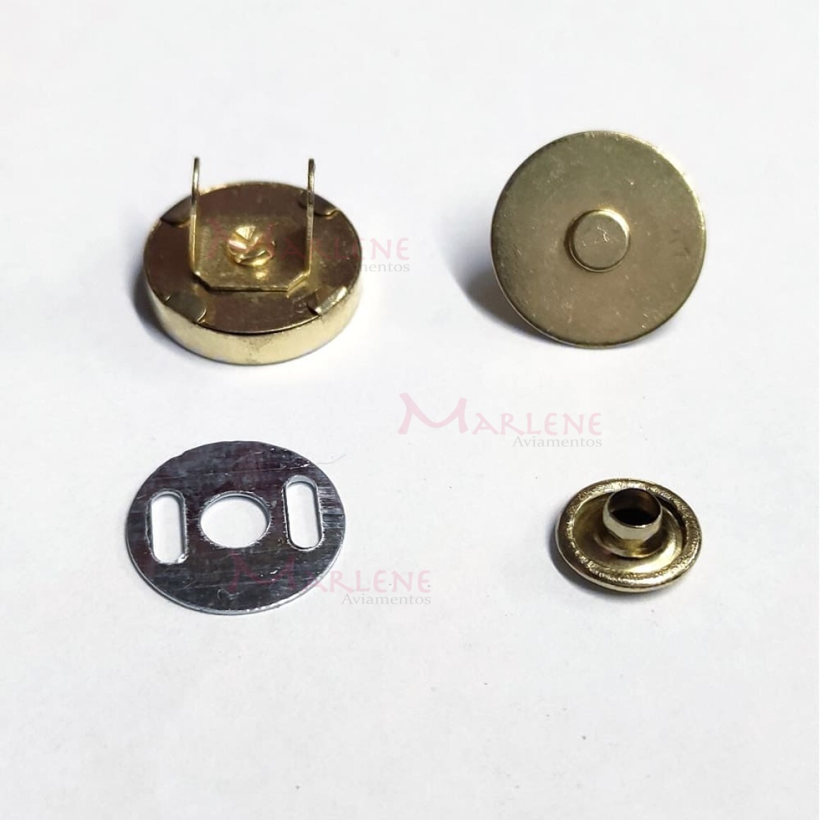 Detalhes: Botão imantado com rebite 14mm com 10 unidades latonado, uso com matriz