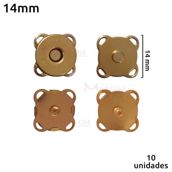 Detalhes: Botão imantado 14mm para costura latonado com 10 unidades