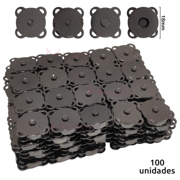Detalhes: Botão imantado para costura 18mm grafite com 100 unidades
