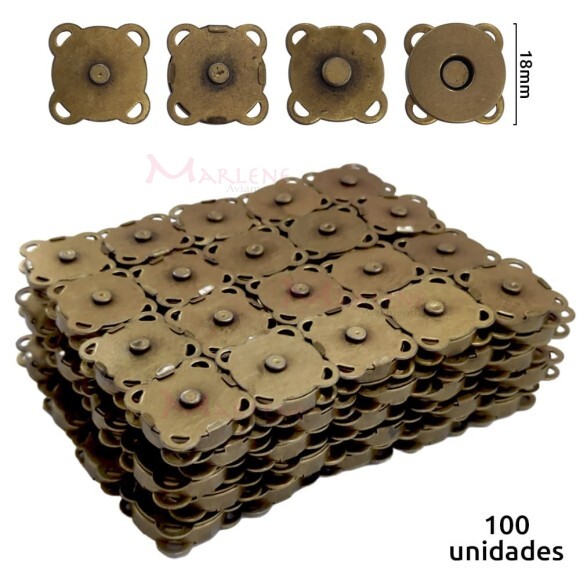 Detalhes: Botão imantado para costura 18mm ouro velho com 100 unidades