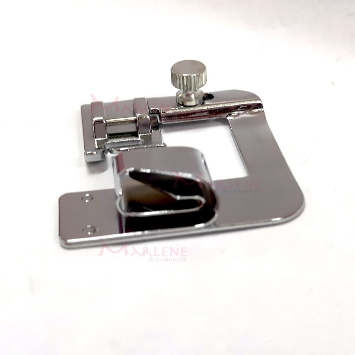 Uso: Calcador para fazer bainha de 19mm na máquina doméstica. Fazendo a primeira volta do tecido no calcador, ele mantém a regularidade no tamanho da bainha, facilitando muito no acabamento e uniformidade da costura.