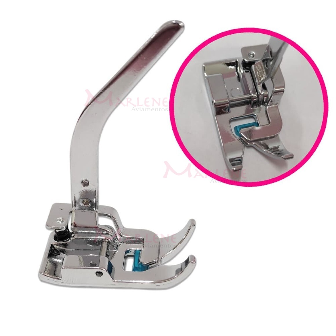 Uso: Calcador usado para costura malha e lã em máquina doméstica. Sua Haste lateral encosta na haste de ajuste da agulha, dando firmeza a costura em malhas, evitando que o tecido enrugue ou franza no meio do processo.
