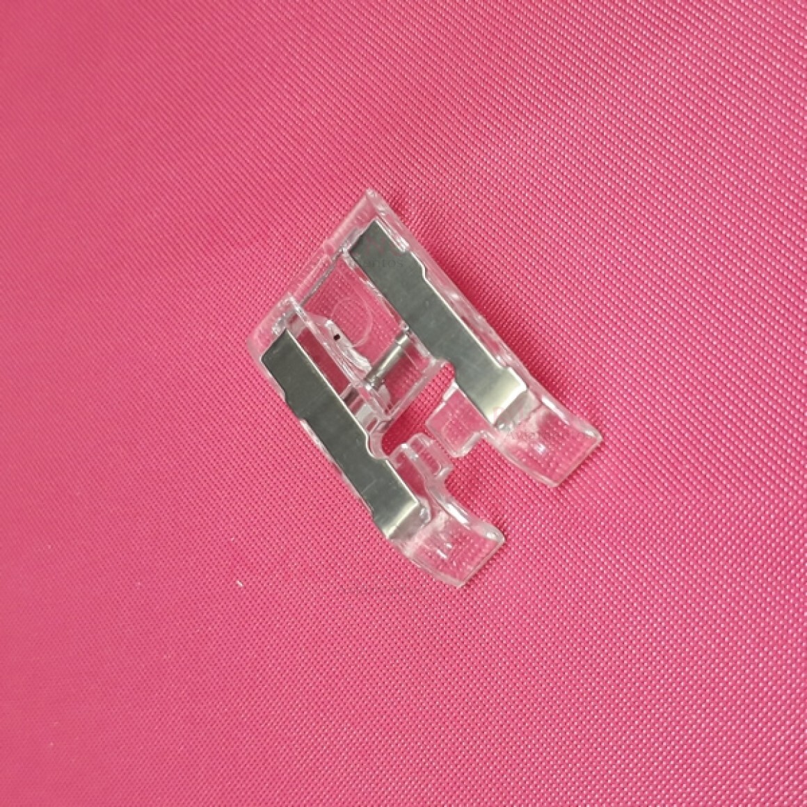 Detalhes: Calcador para ponto decorativo, ponto cheio ou para cetim em máquina doméstica. É utilizado quando se quer fazer os pontos cheios decorativos e também pode ser utilizado para cobrir cordão.