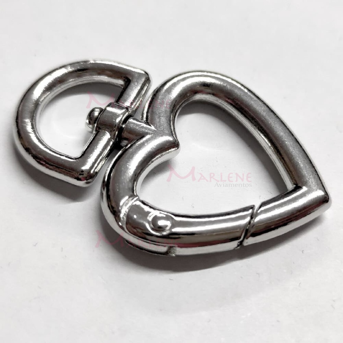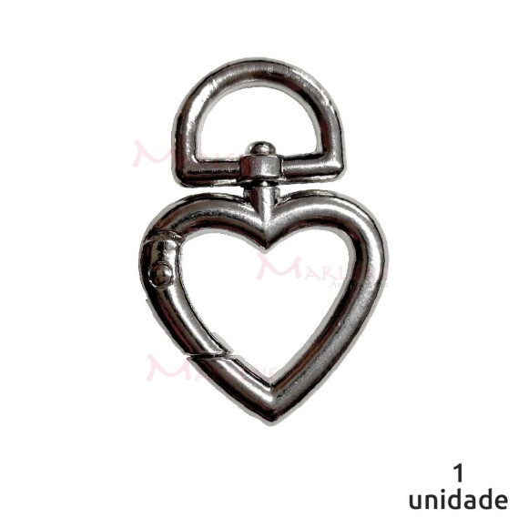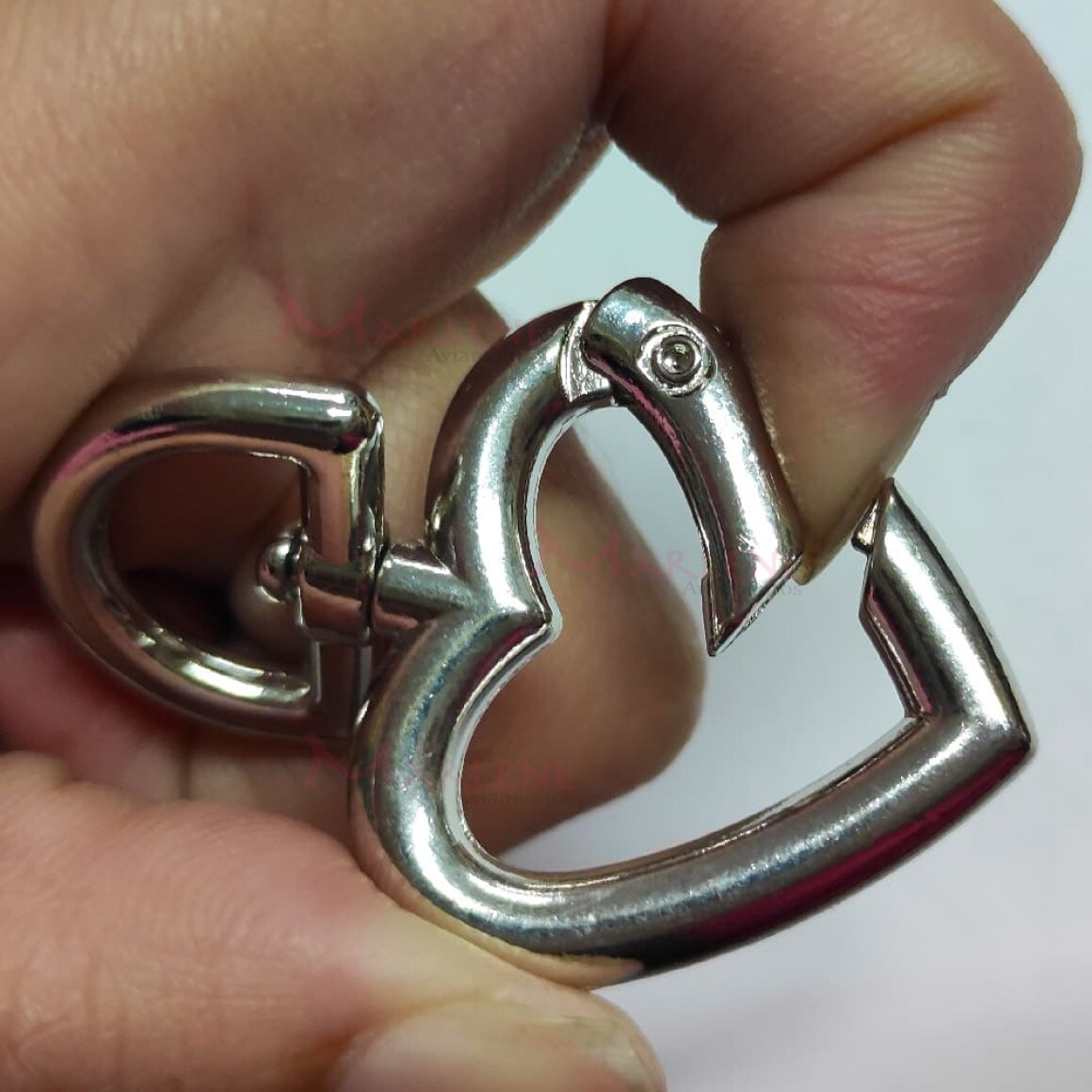 Uso: Utilizado como mosquetão articulado em forma de coração em bolsas, mochilas, acessórios decorativos ou chaveiros, pulseiras ou colares de correntes, entre outros itens.