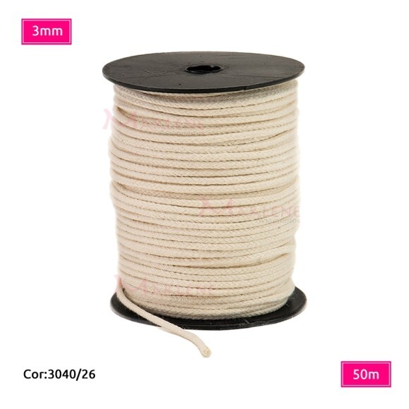 Detalhes: Cordão trançado São José 3mm de algodão crú com 50m