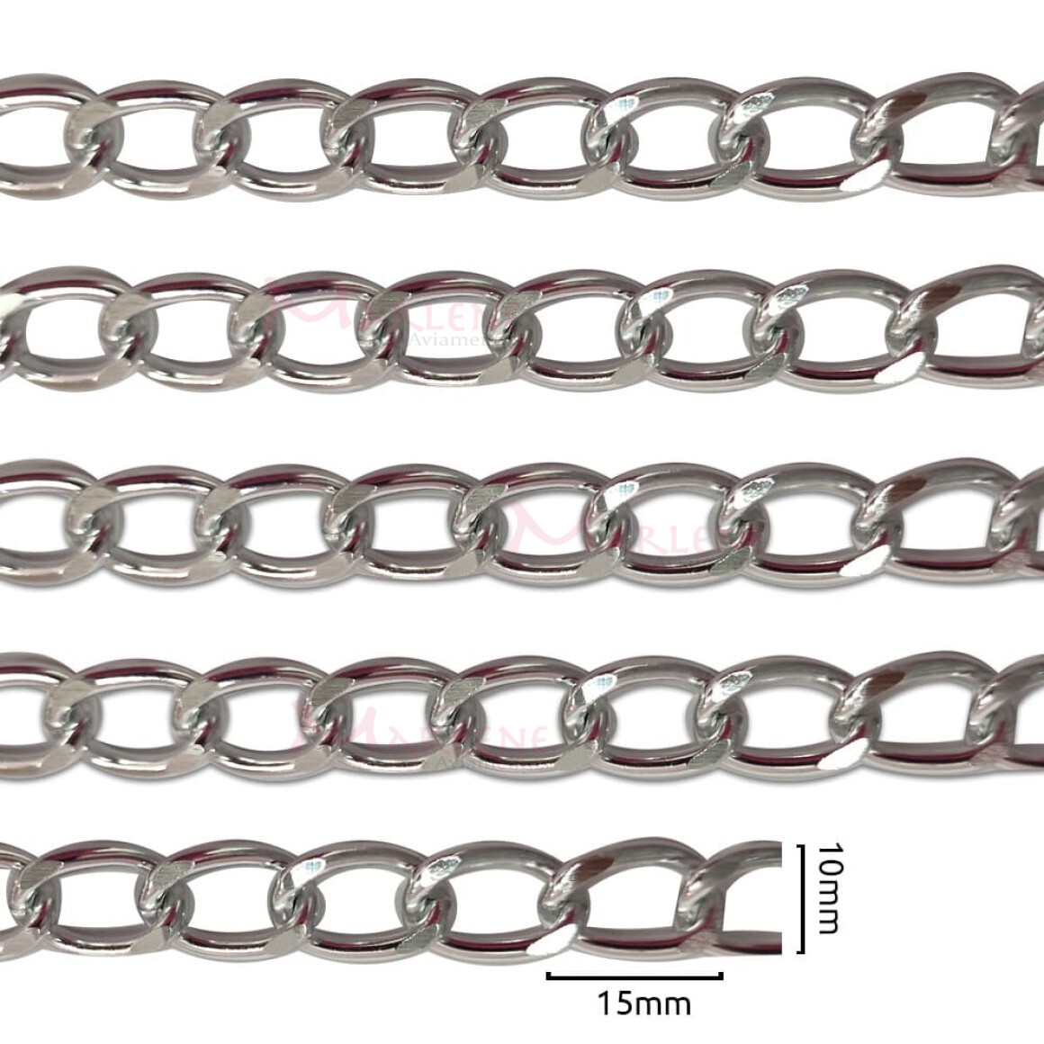 Corrente para bolsa níquel com 25 metros 10x15mm alumínio