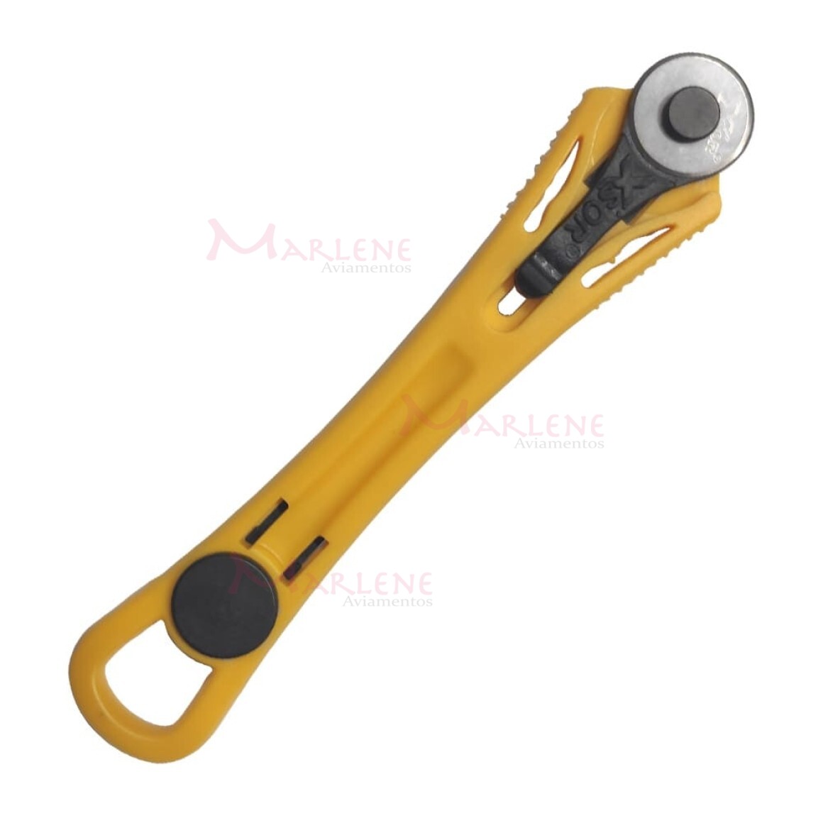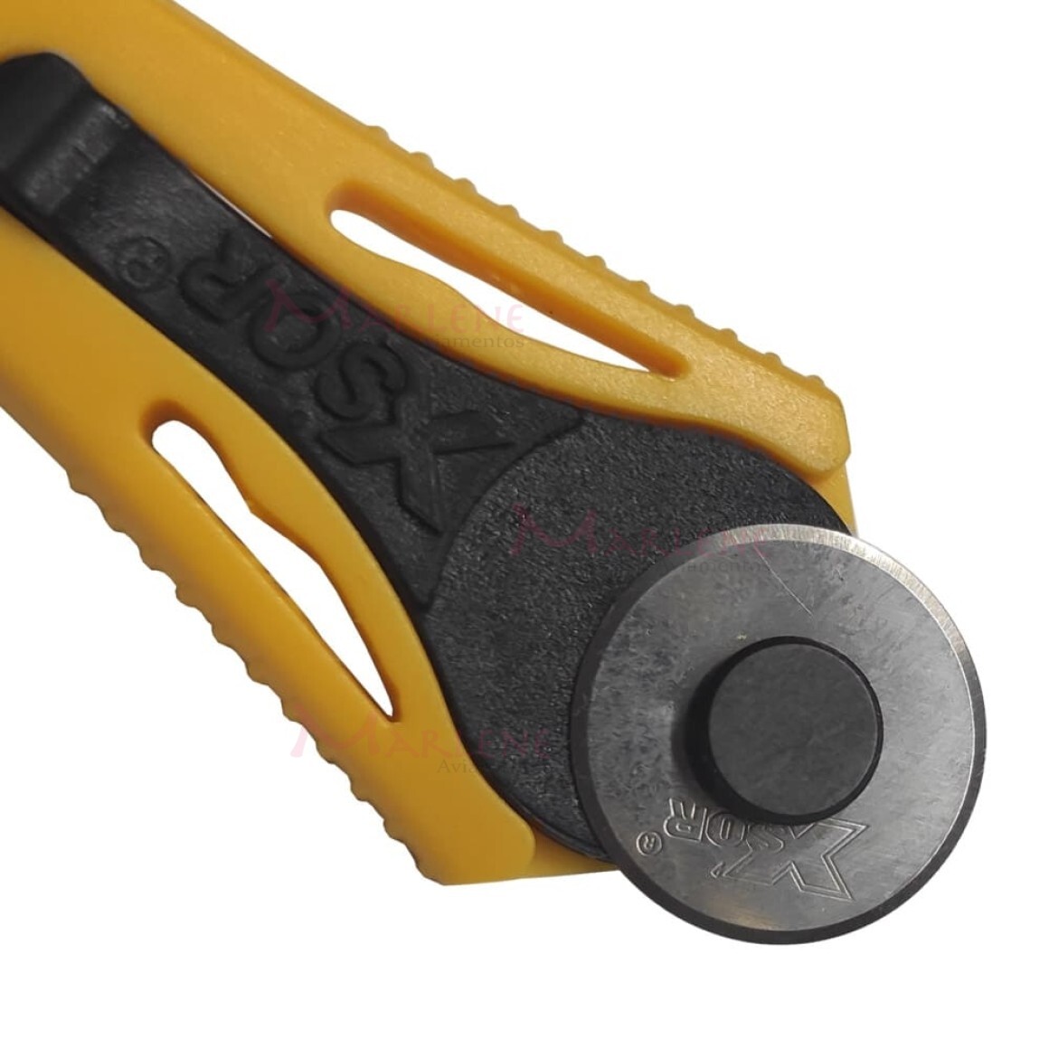 Uso: Cortador circular usado para cortes precisos em tecidos, papéis e mantas. Ideal para camadas menores ou mais finas. Possui lâmina retrátil para dar mais segurança na hora do uso.