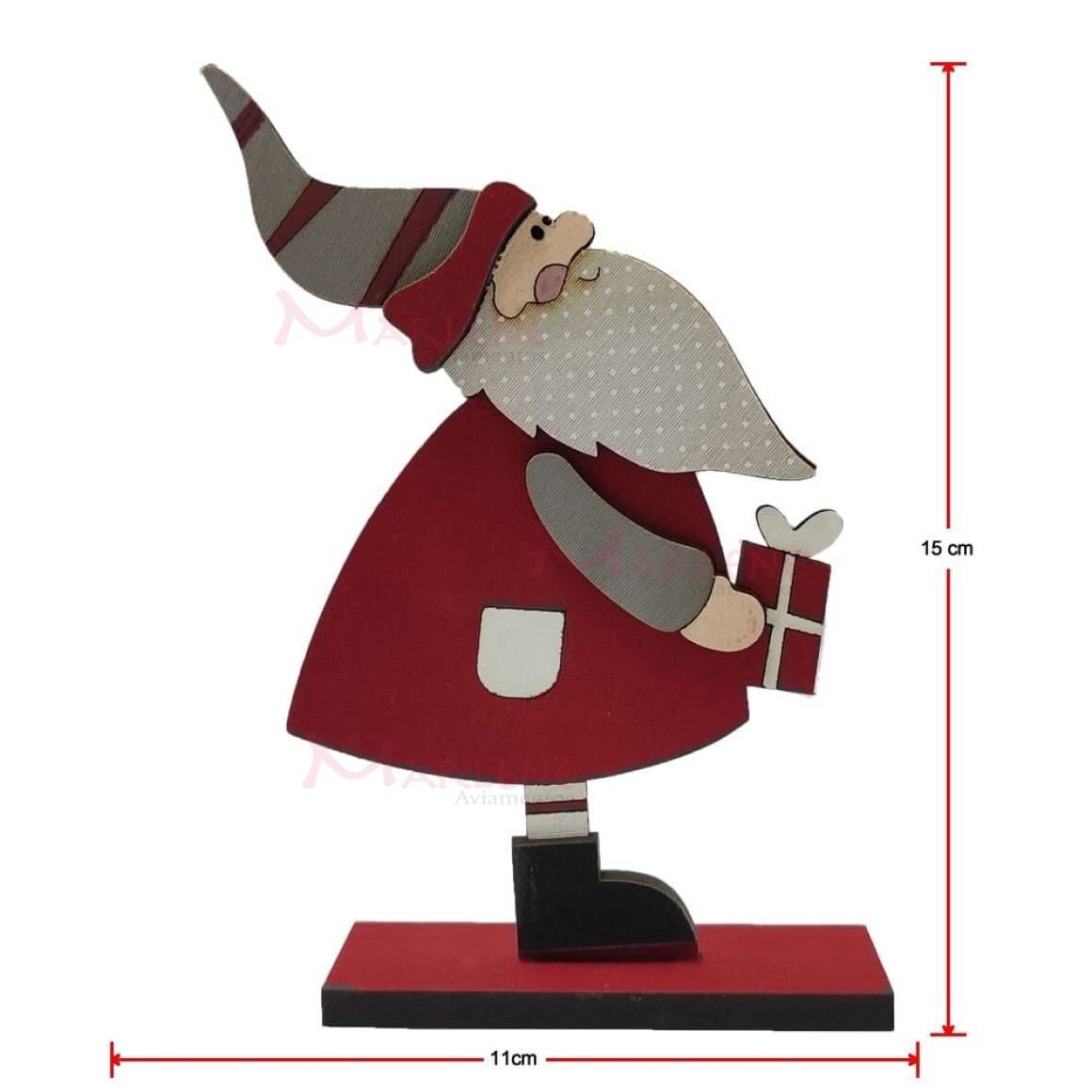 Uso: Enfeite papai noel para decoração de mesa de natal, arredores da ávore de natal ou outros ambientes de clima natalino. Feito em material de mdf resistente com detalhes em pintura e tecido.