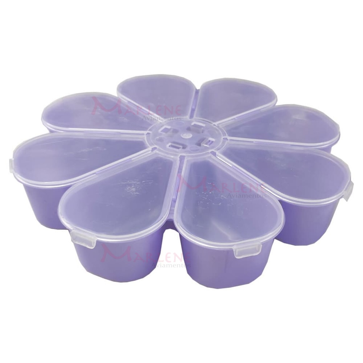 Detalhes: Estojo margarida lilás com 8 divisórias