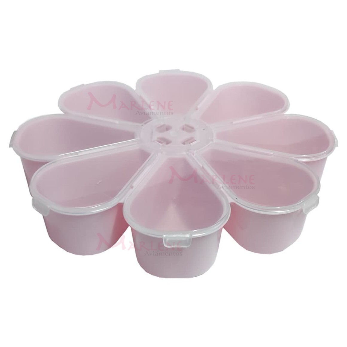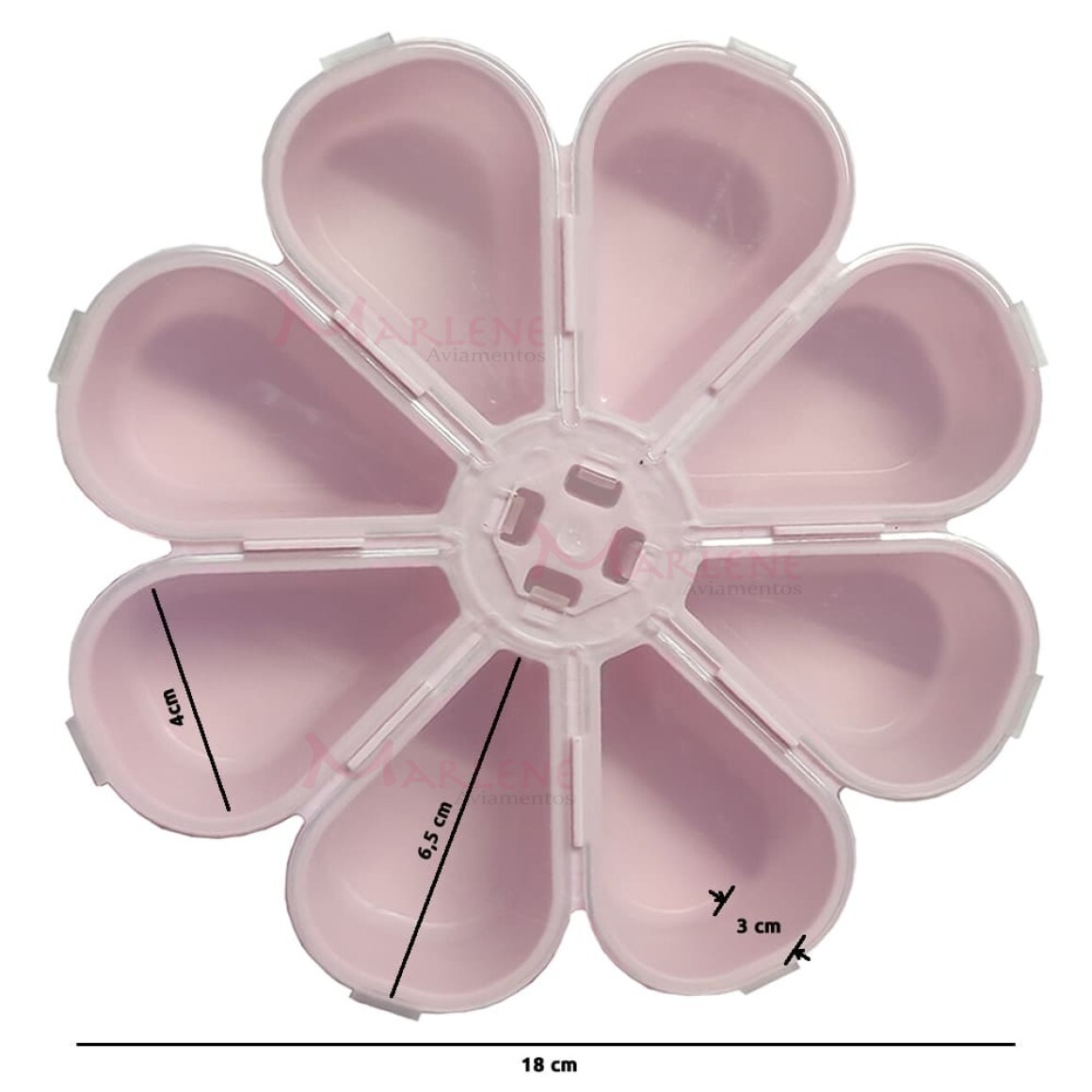Uso: Caixa plástica em formato de flor margarida usada para organizar objetos de costura como botões, bobinas, cursores, retroz de linhas, entre outros itens, além de poder ser usada como organizador de joias.