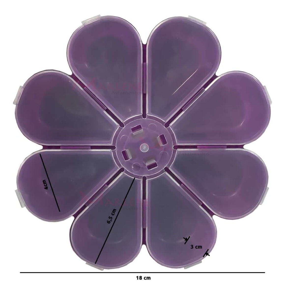 Uso: Caixa plástica em formato de flor margarida usada para organizar objetos de costura como botões, bobinas, cursores, retroz de linhas, entre outros itens, além de poder ser usada como organizador de joias.