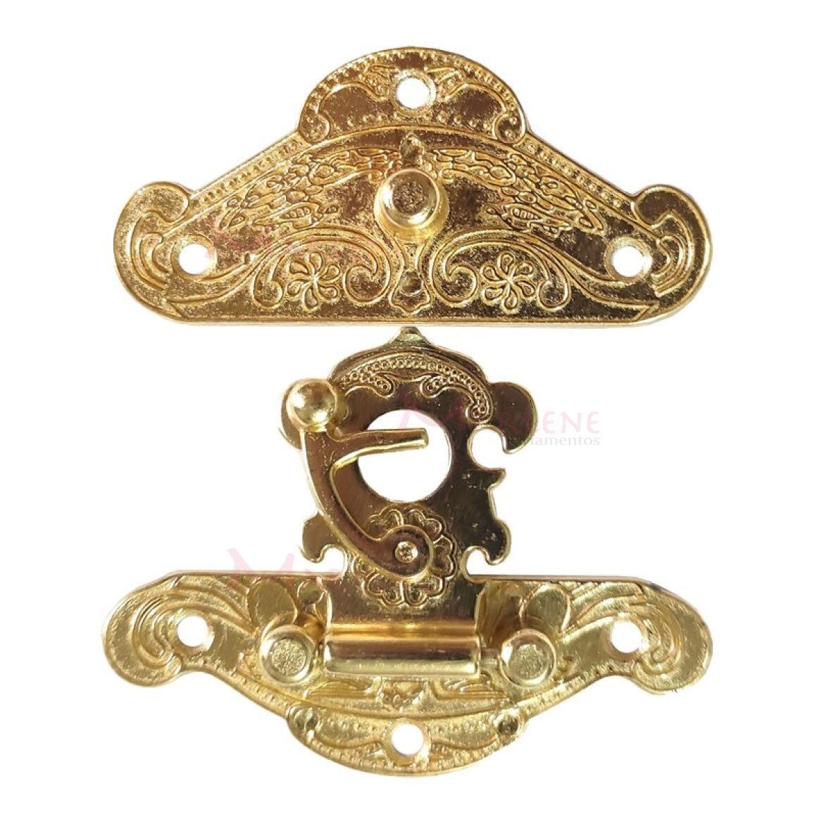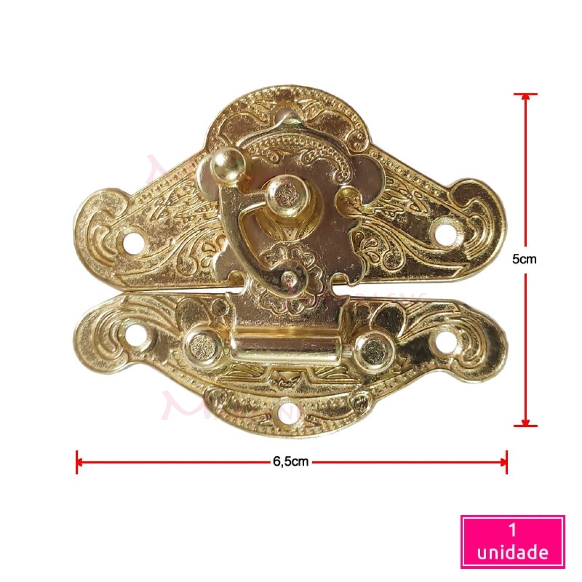 Detalhes: Fecho para caixa com trava ou torniquete grande latonado unidade