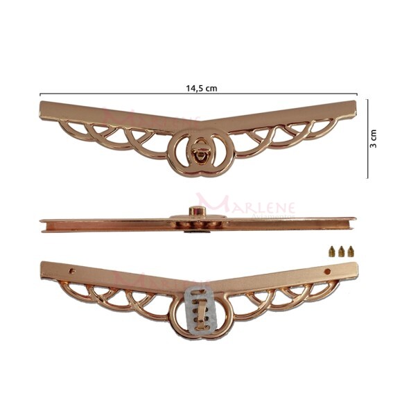 Detalhes: Fecho torniquete para bolsa cor ouro 14,5cm HYSK7026 com 1 unidade