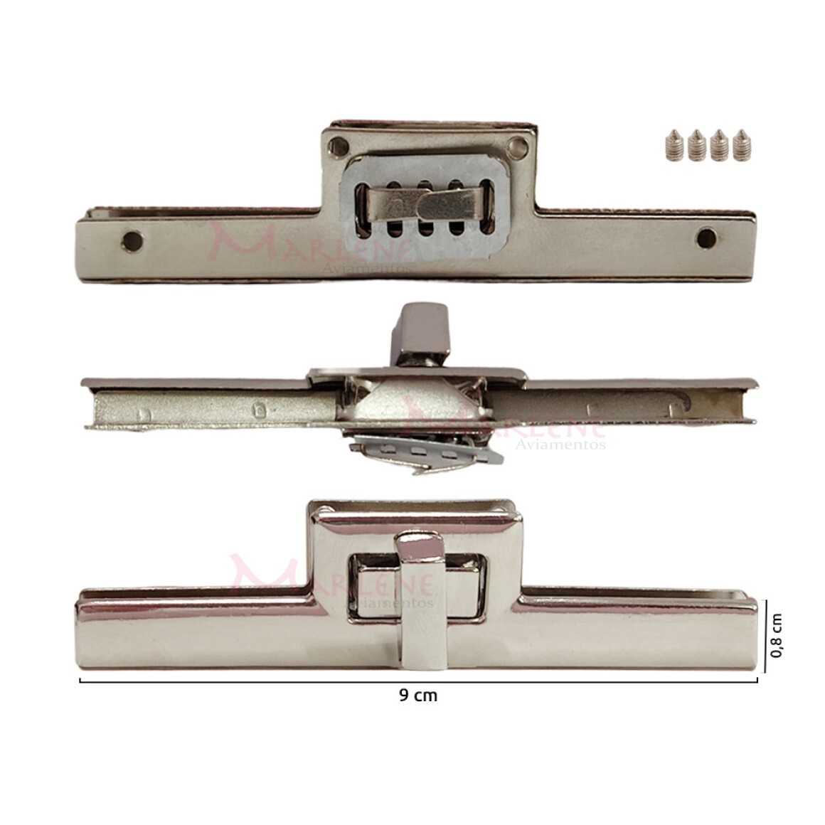 Detalhes: Fecho torniquete para tampa de bolsa cor níquel 9cm HYSK7005-1 com 1 unidade