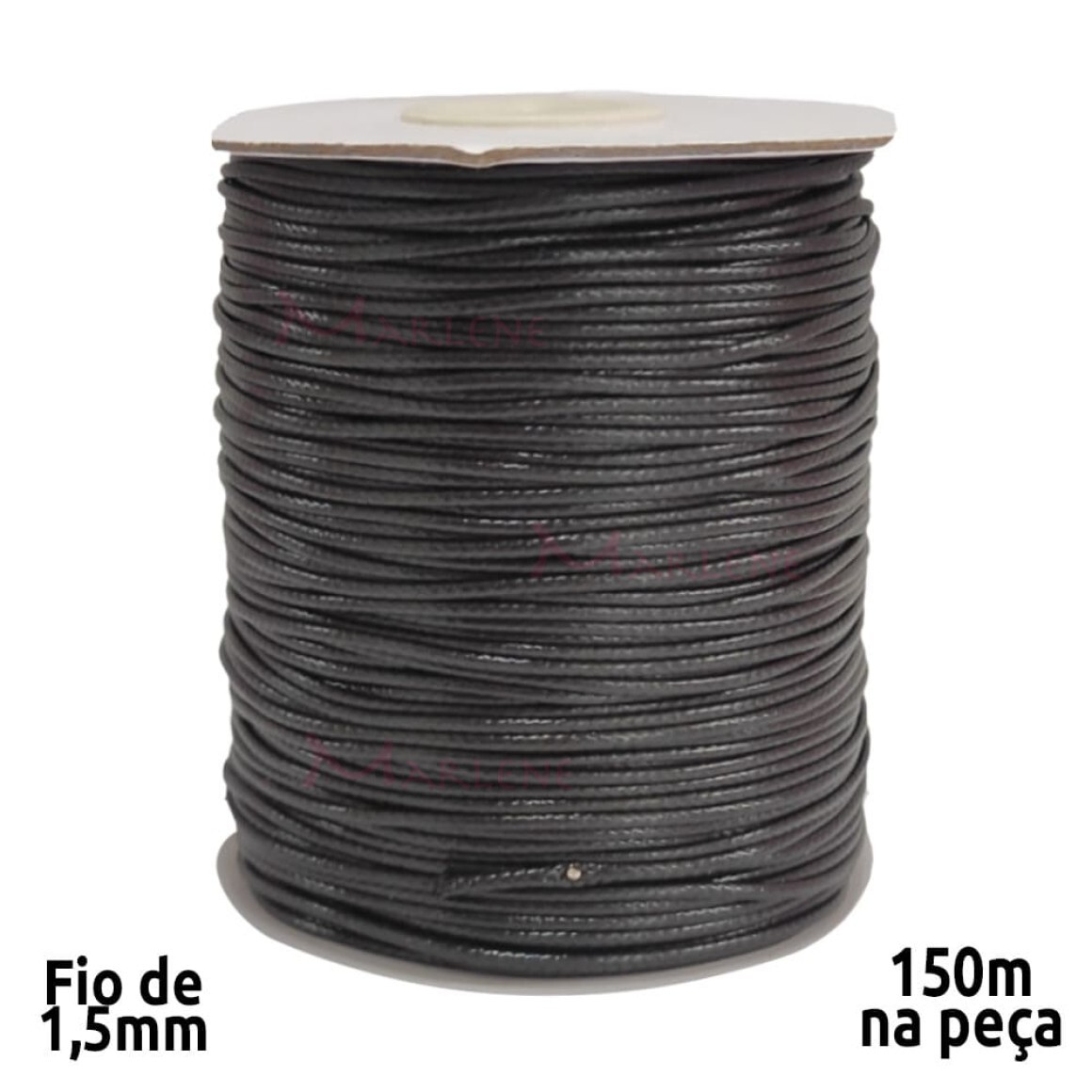 Detalhes: Fio encerado 1,5mm preto com 150m na peça HGLX
