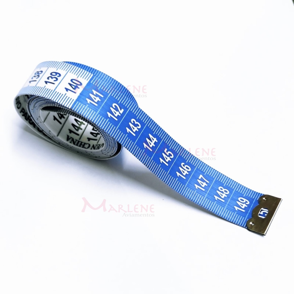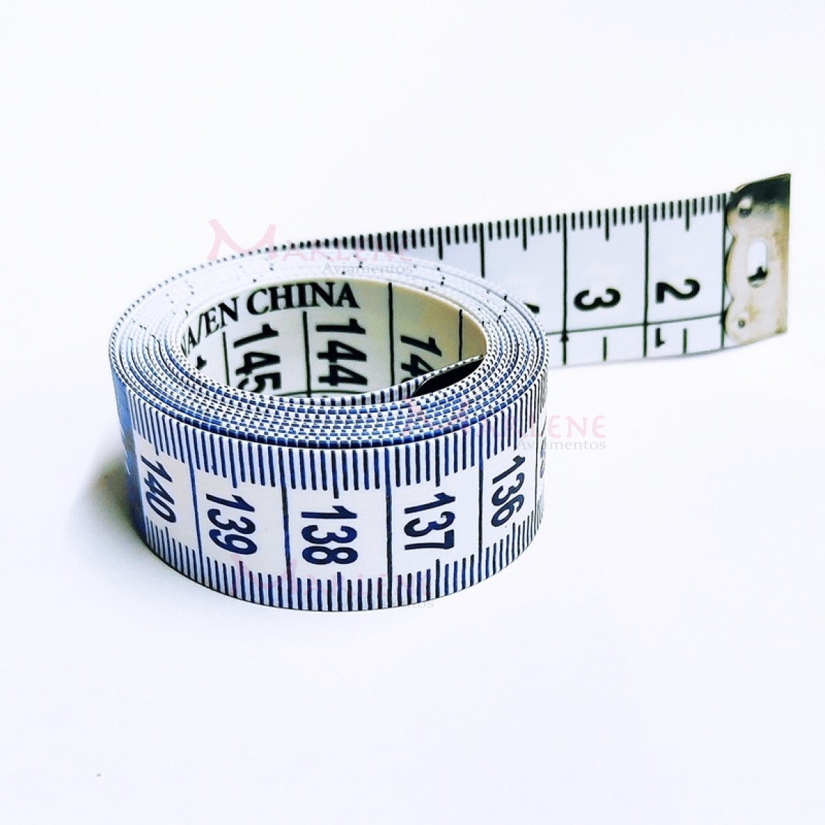 Uso: Fita métrica com marcação em centimetro de 1 lado e milimetrado do outro. Seu material é resistente, evitando que as marcações se apaguem. Possui a grande vantagem de iniciar as marcações de forma invertida, ou seja, termindando no 150 e quando virada, iniciando do 1, evitando perda de tempo até virar a fita.