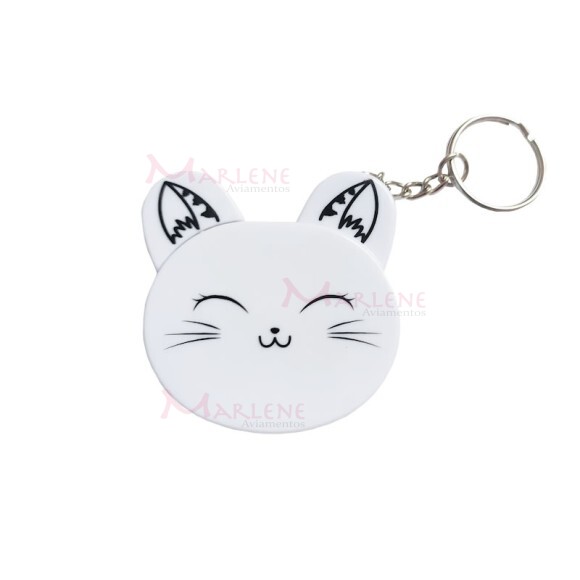 Detalhes: Fita métrica gatinha retrátil com chaveiro