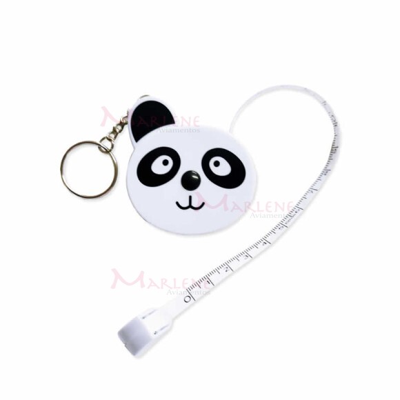 Detalhes: Fita métrica panda retrátil com chaveiro