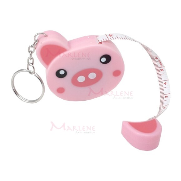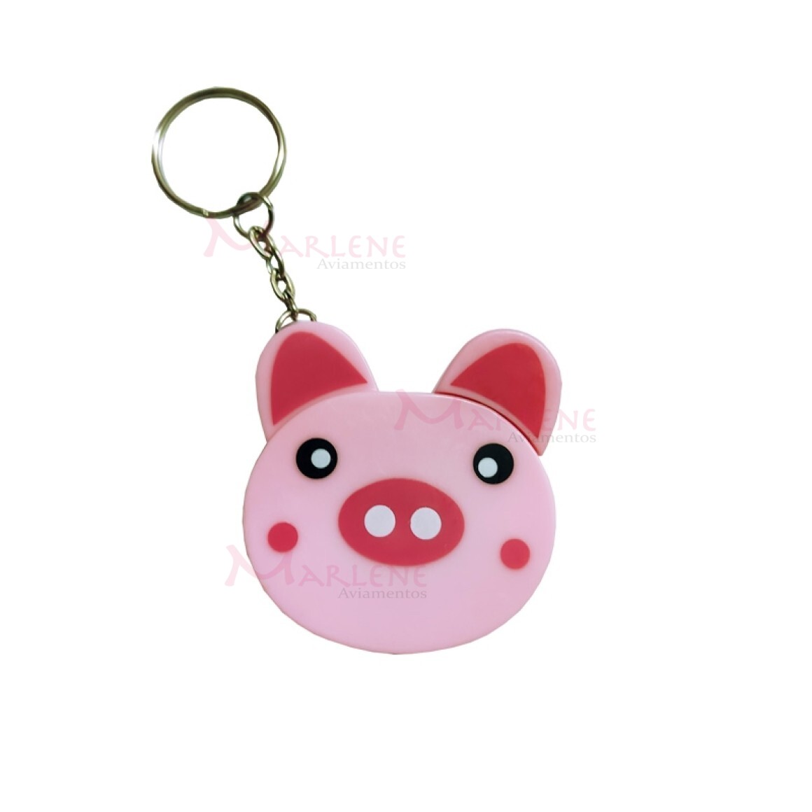 Detalhes: Fita métrica porco retrátil com chaveiro