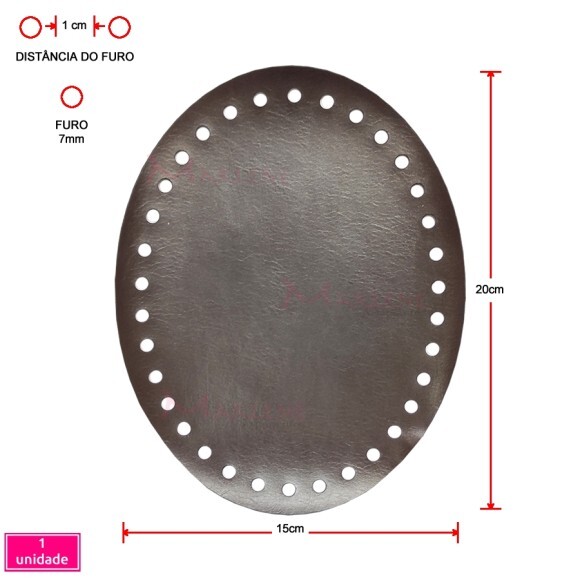 Detalhes: Fundo de bolsa marrom 15X20cm oval sintético