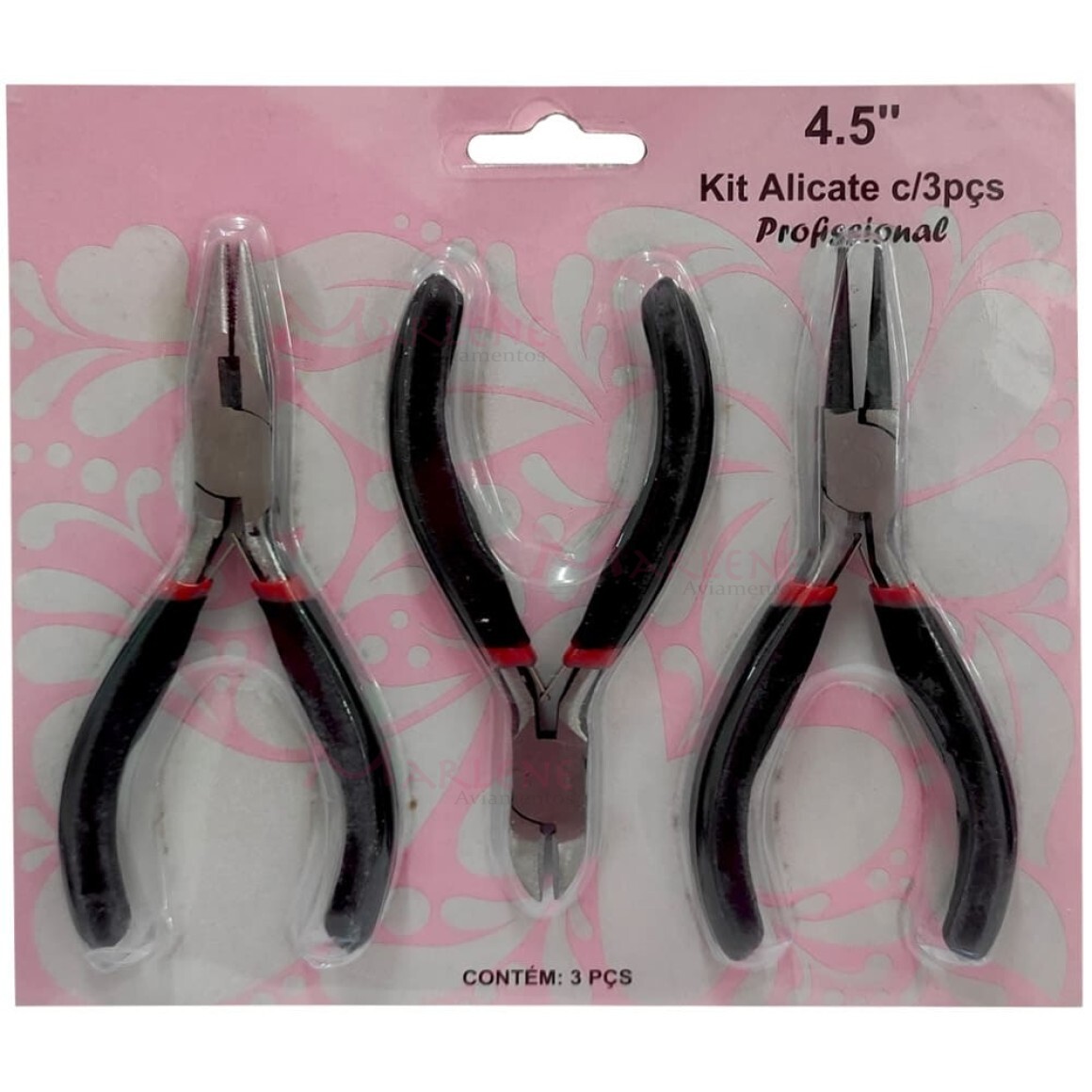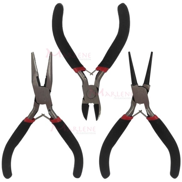Quantidade: 1 kit (1 alicate ponta redondo, 1 alicate de corte e 1 alicate multiuso ponta chata)