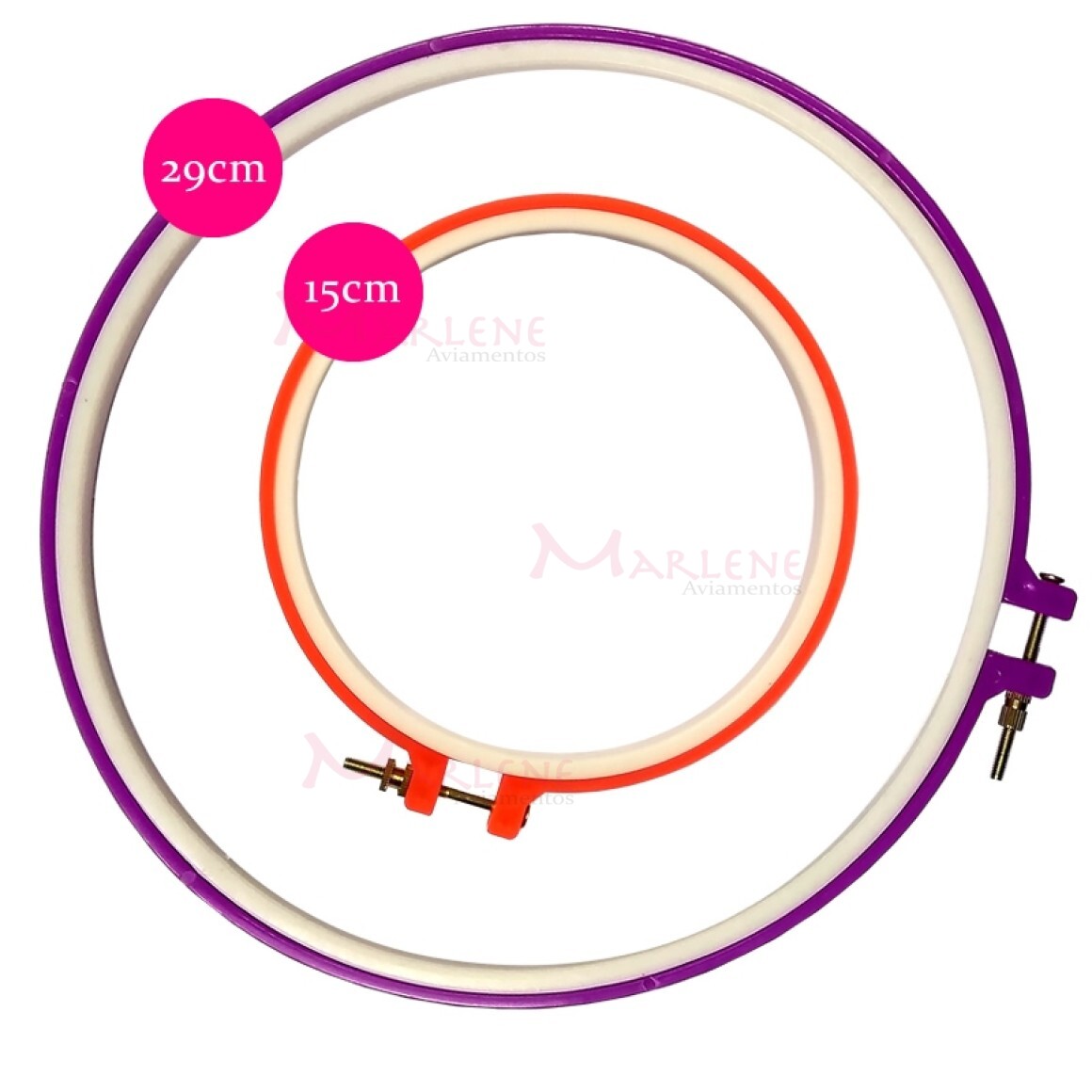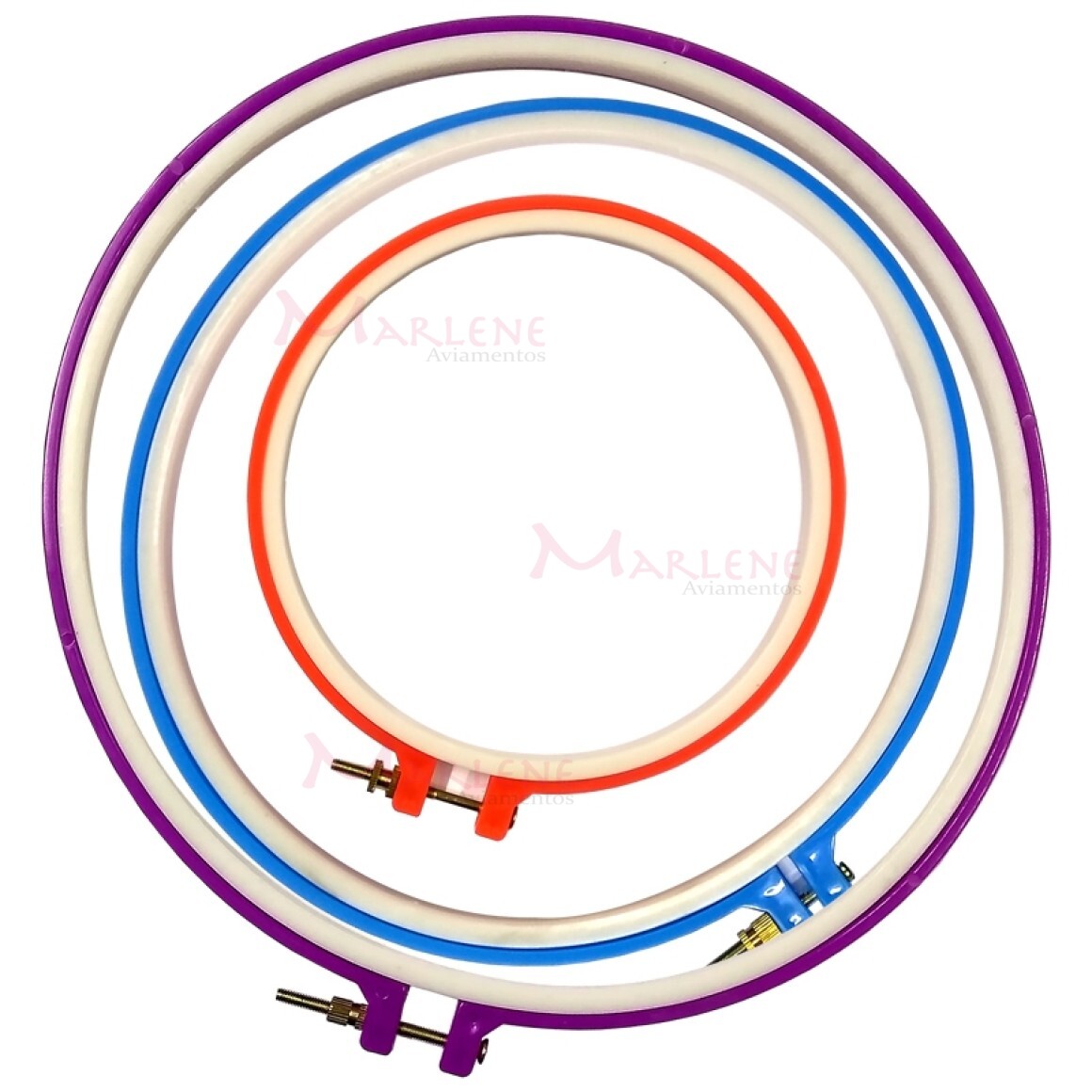 Detalhes: Kit bastidores plásticos para bordado tamanhos 15/25/29cm Westpress.