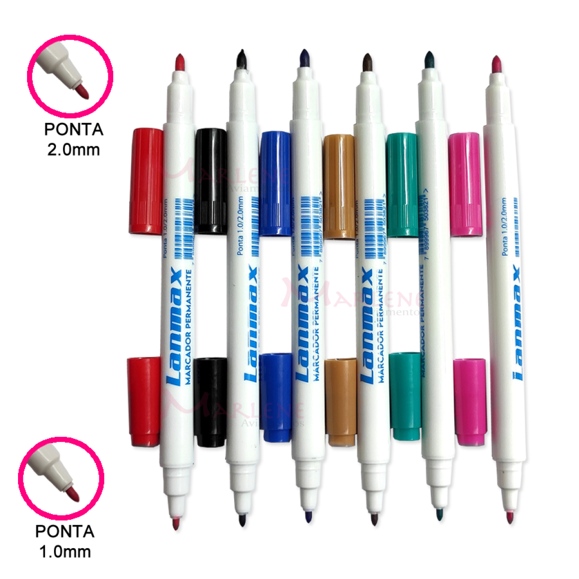 Detalhes: Kit canetas permanentes com 6 cores e 12 pontas