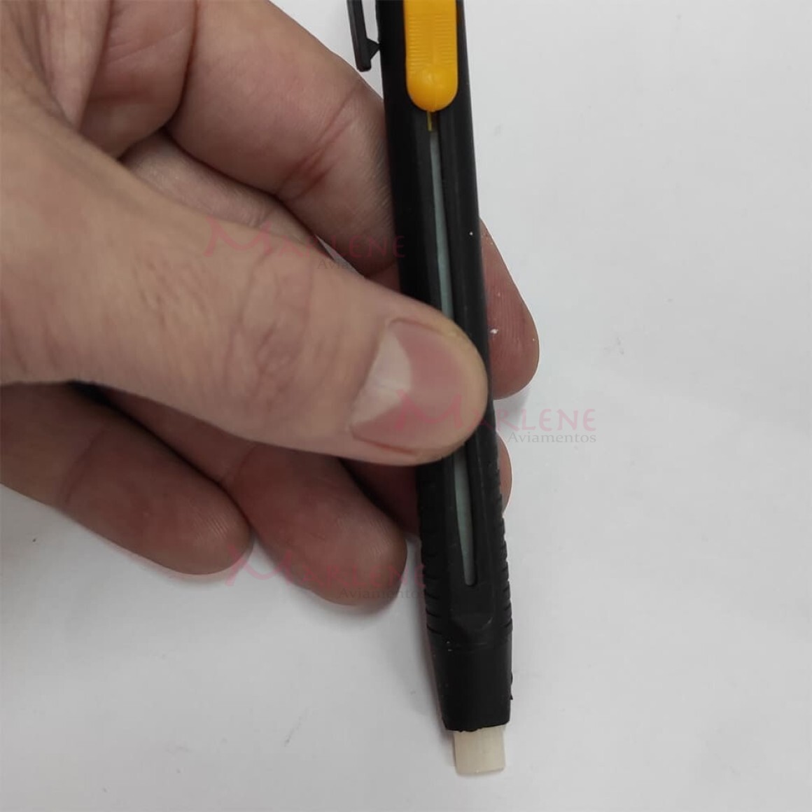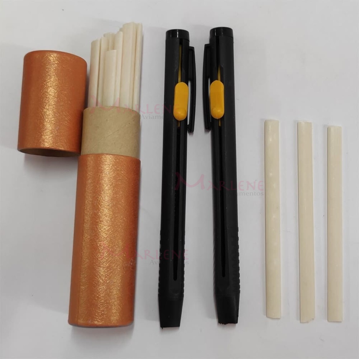 Uso: O kit lapiseira e refil mágico, é super prático, pois você pode utilizá-lo para riscar em trabalhos de alfaiataria, costura, confecções e depois do trabalho feito, é só passar o ferro, que o traço do mesmo desaparece com o calor. Possui a facilidade de poder remover o refil da lapiseira e ter várias cargas de reposição.
