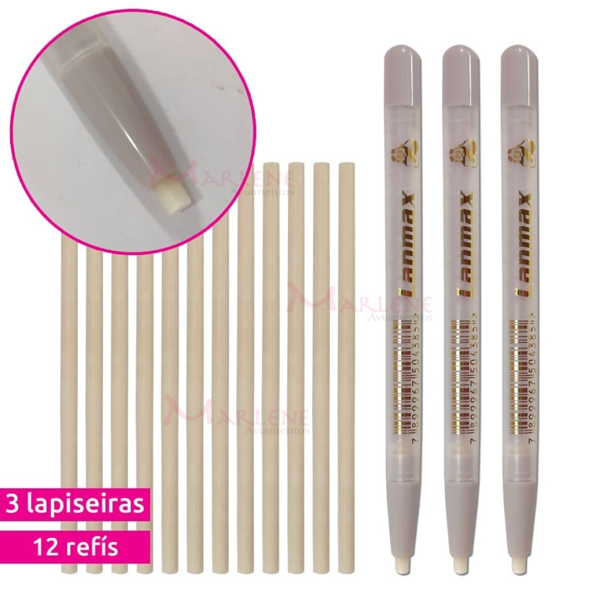 Detalhes: Kit mágico com 3 lapiseiras e 12 refís Lanmax para tecido apaga com calor