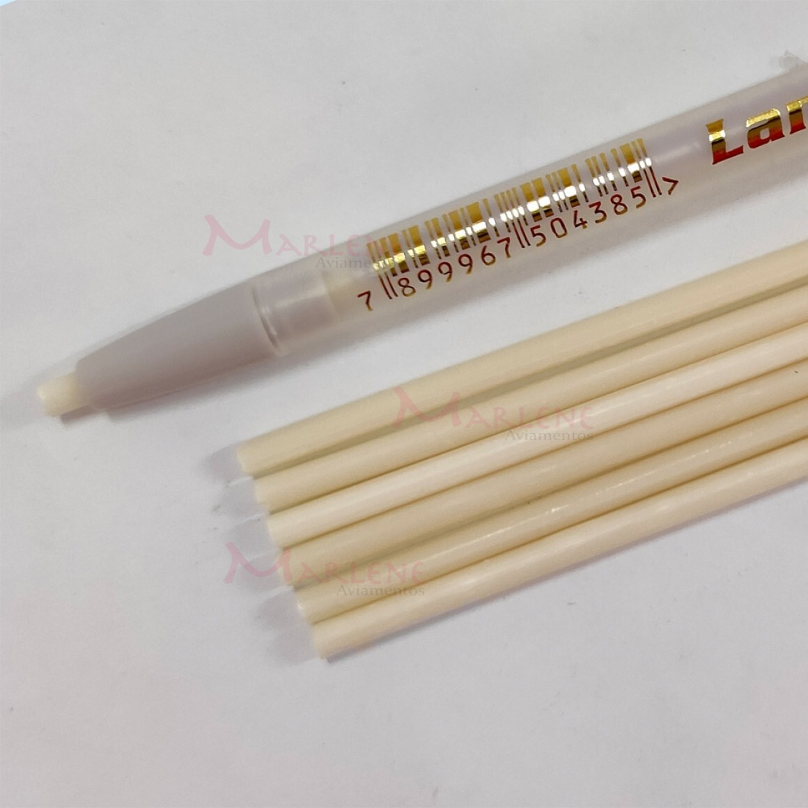 Uso: O kit lapiseira e refil mágico, é super prático, pois você pode utilizá-lo para riscar em trabalhos de alfaiataria, costura, confecções e depois do trabalho feito, é só passar o ferro, que o traço do mesmo desaparece com o calor. Possui a facilidade de poder remover o refil da lapiseira e ter várias cargas de reposição.