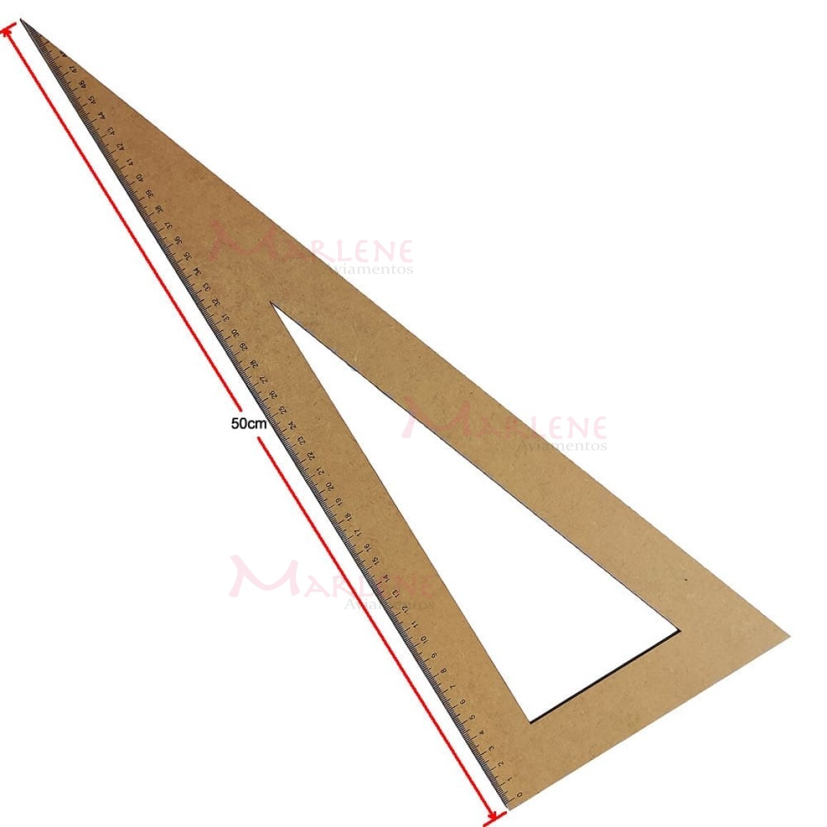Esquadro: comprimento: 50cm, largura inferior: 18cm, espessura: 3mm