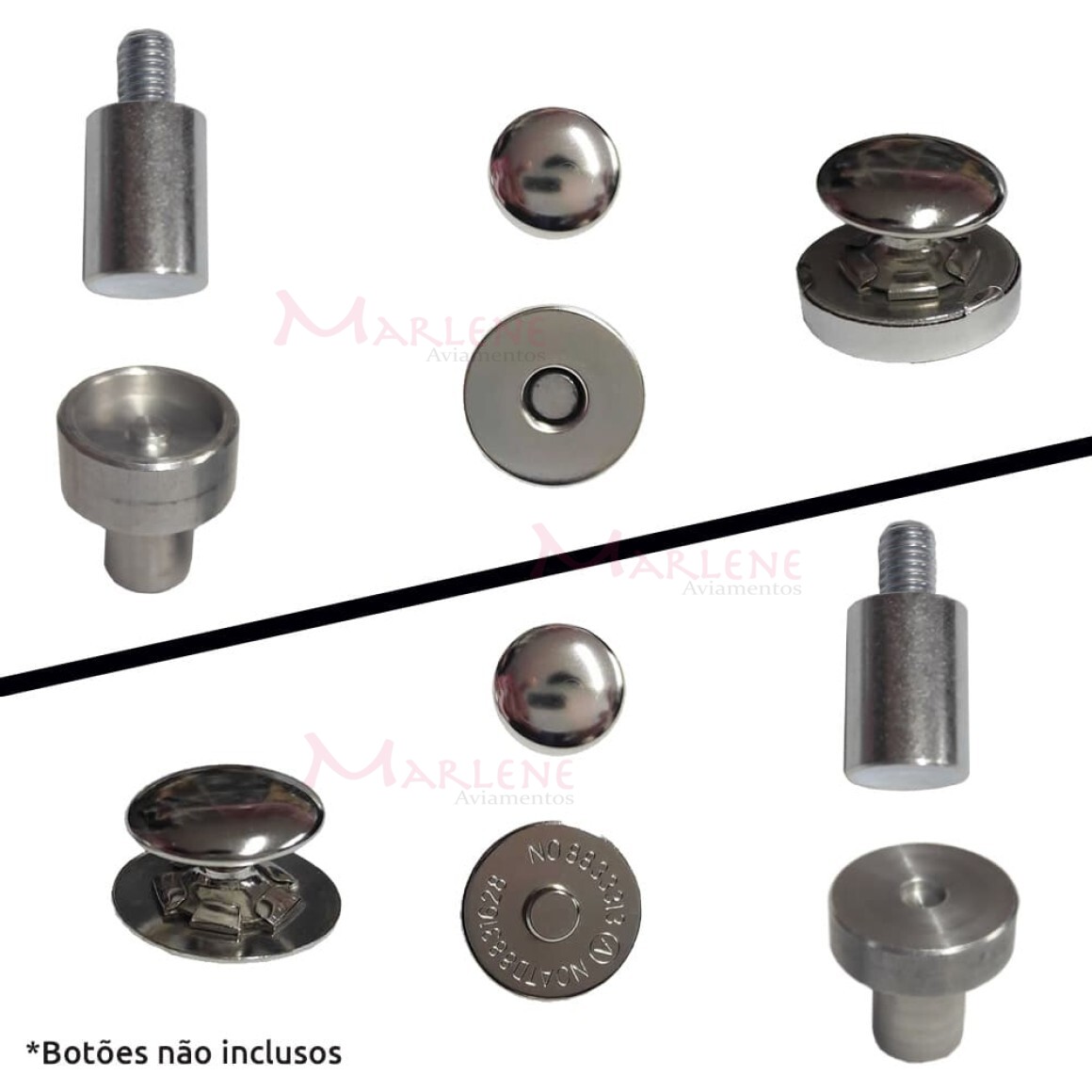 Uso: A matriz para botão de ímã usada para aplicar botões tamanho 14 com acbamento dos dois lados (rebite duplo). Ótimo para aplicações em bolsas, necessaires, entre outros.